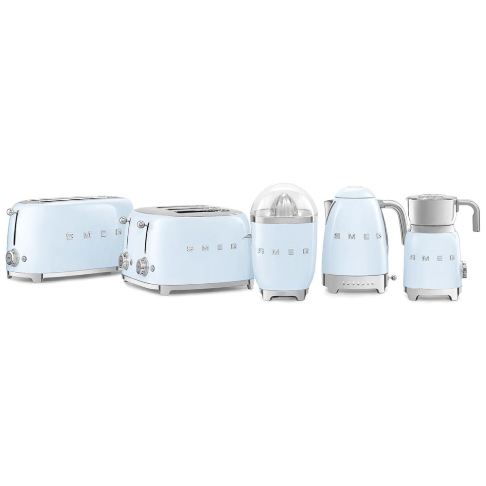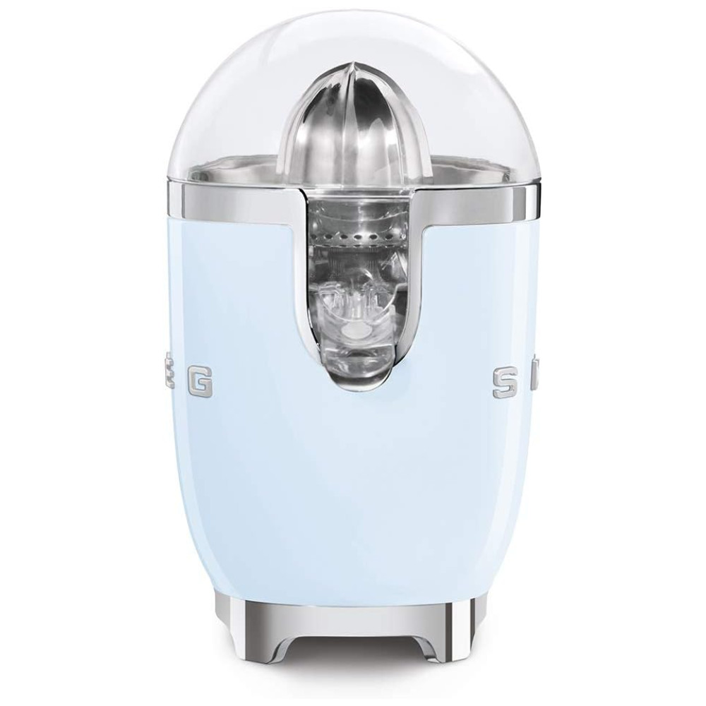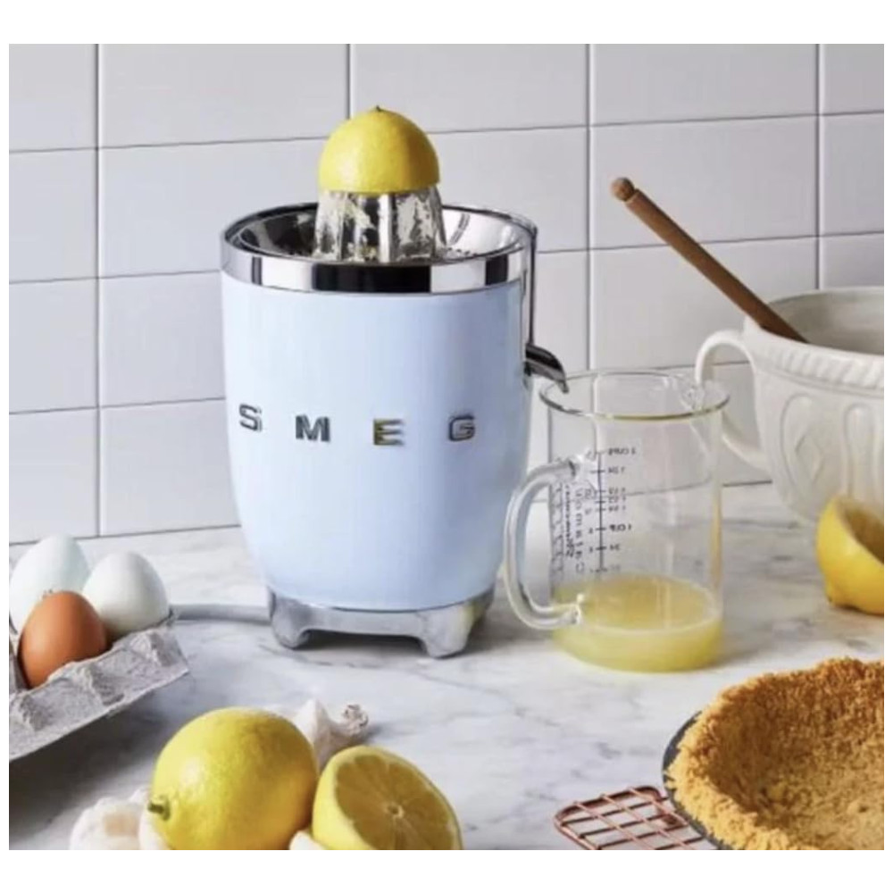 Espremedor de Frutas Cítricas SMEG 50s Retro com Bico Antivazamento Acionamento Automático e Coletor Eficiente Tritan Azul Pastel CFJ11PBUS