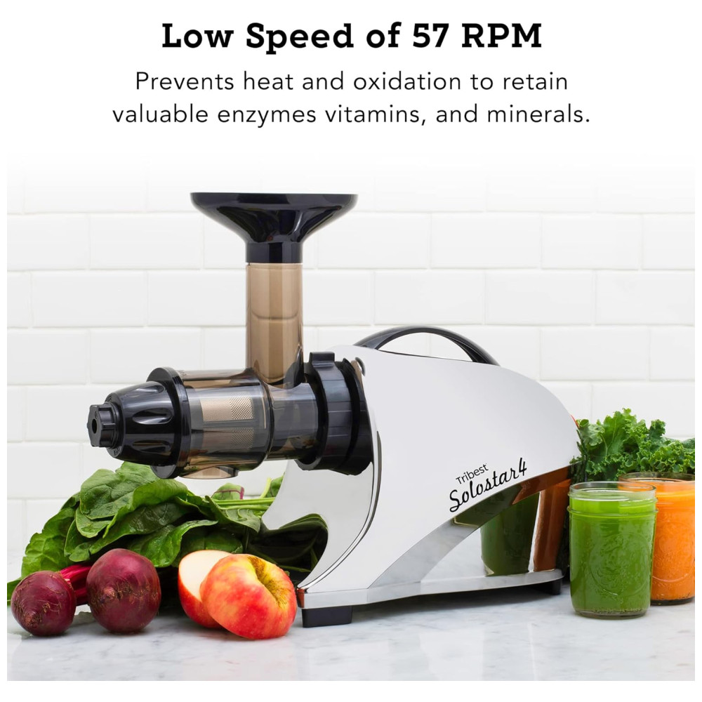 Espremedor de Frutas de Mastigação Lenta Horizontal de Prensa a Frio 150W Tribest Solostar SS4250B Prata