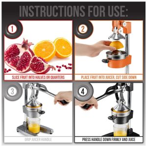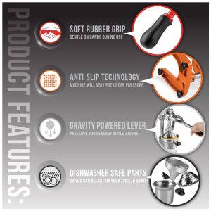 Qualidade profissional este espremedor manual é feito de ferro fundido resistente para sucos contínuos. A alavanca confiável ajuda você a espremer mais suco com menos esforço.