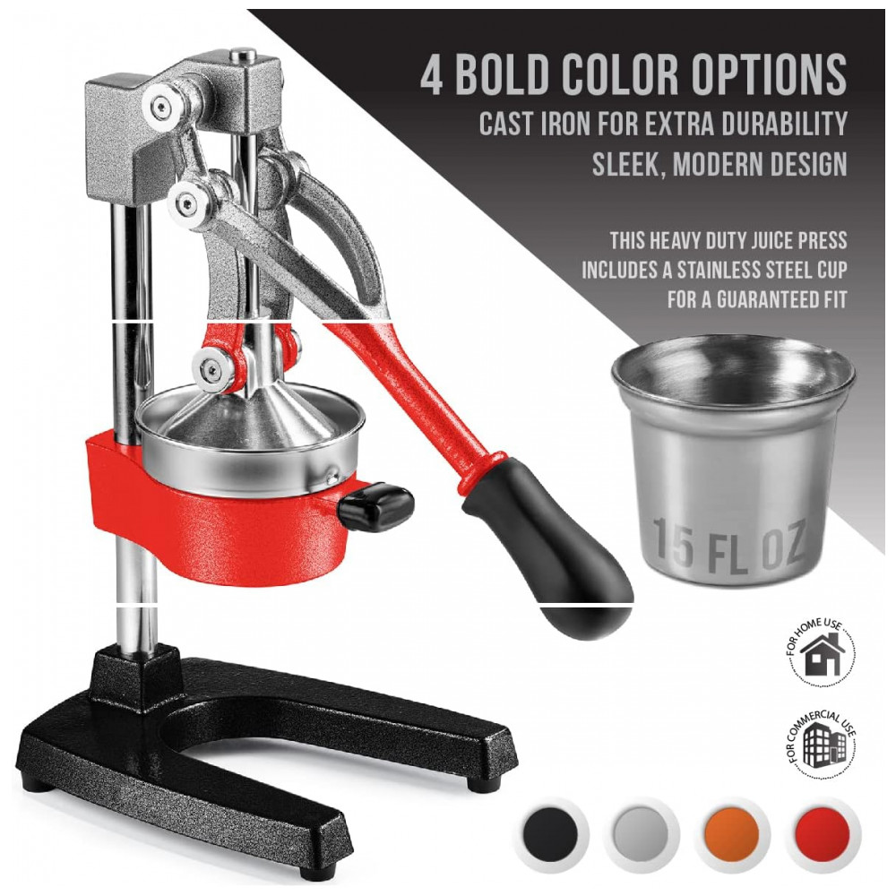 Qualidade profissional este espremedor manual é feito de ferro fundido resistente para sucos contínuos. A alavanca confiável ajuda você a espremer mais suco com menos esforço