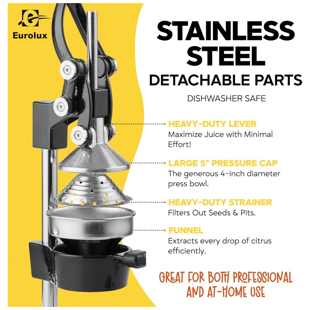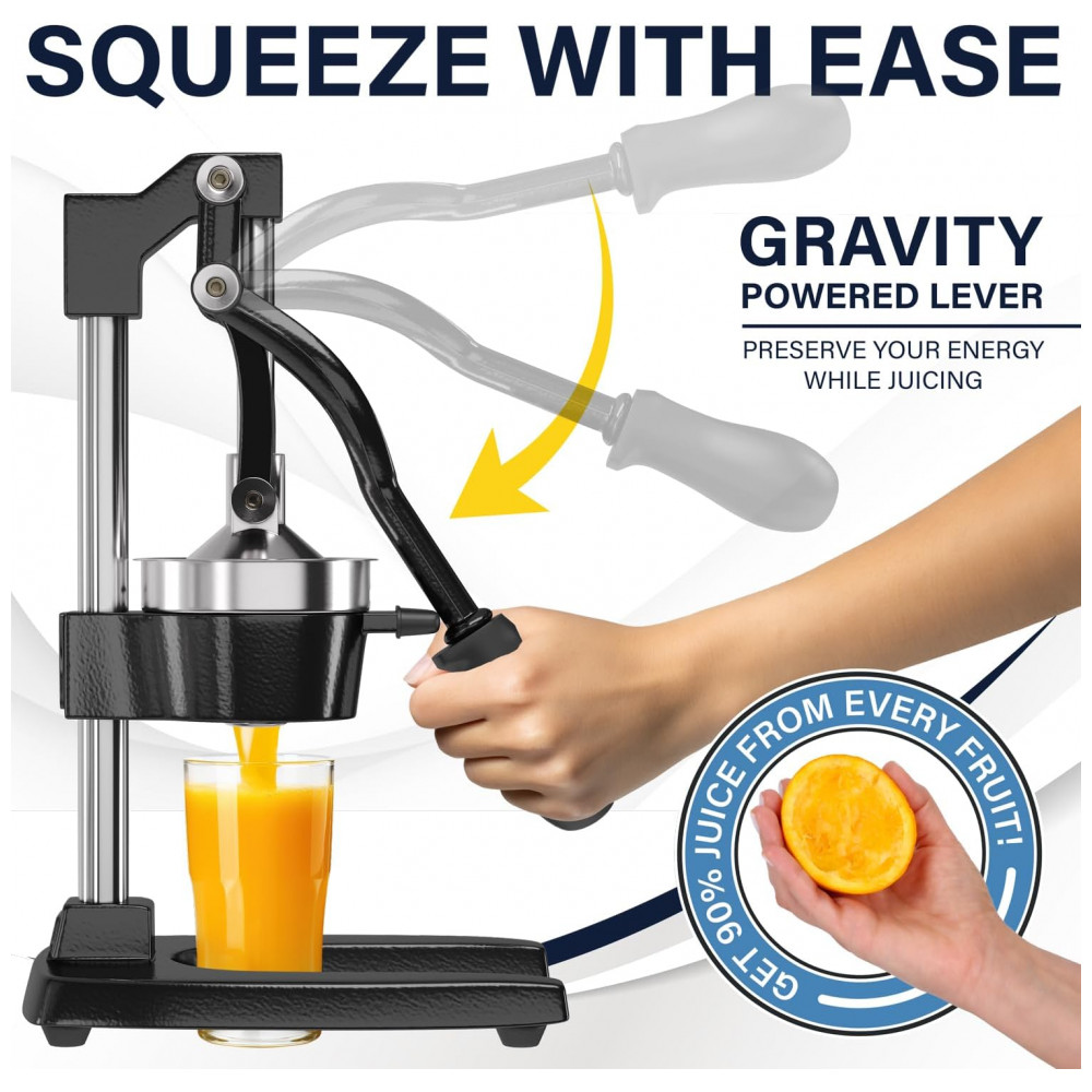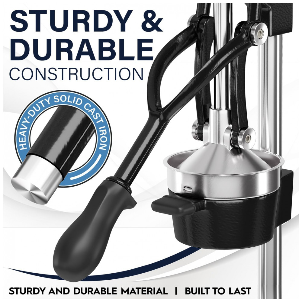 Qualidade profissional este espremedor manual é feito de ferro fundido resistente para sucos contínuos. A alavanca confiável ajuda você a espremer mais suco com menos esforço
