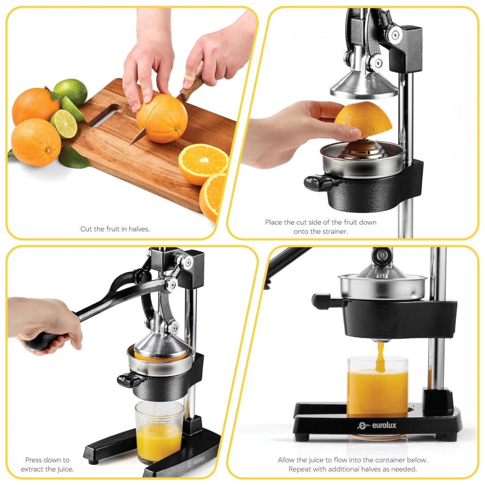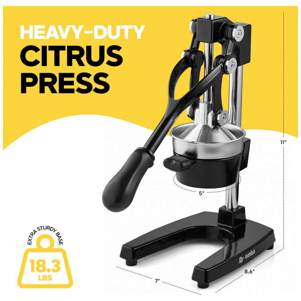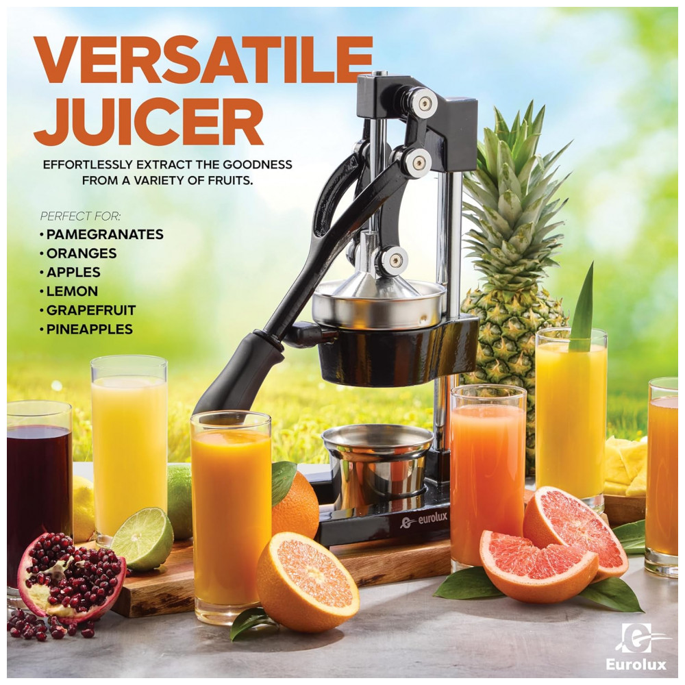 Espremedor de Frutas Profissional Manual Eurolux em Aço Inoxidável Preto