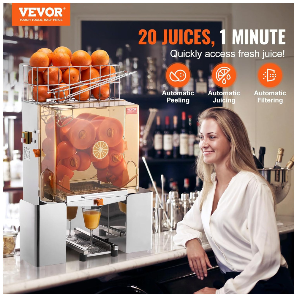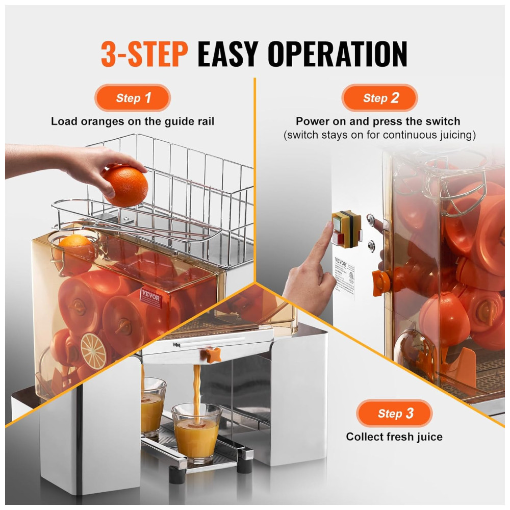 MATERIAL ESTÁVEL A máquina de suco de laranja fresca é feita de aço inoxidável de qualidade alimentar e material PP, o que a torna perfeitamente durável e resistente. O potente motor de 120 watts é incrivelmente resistente. As saídas de ar ajudam a dissipar o calor.