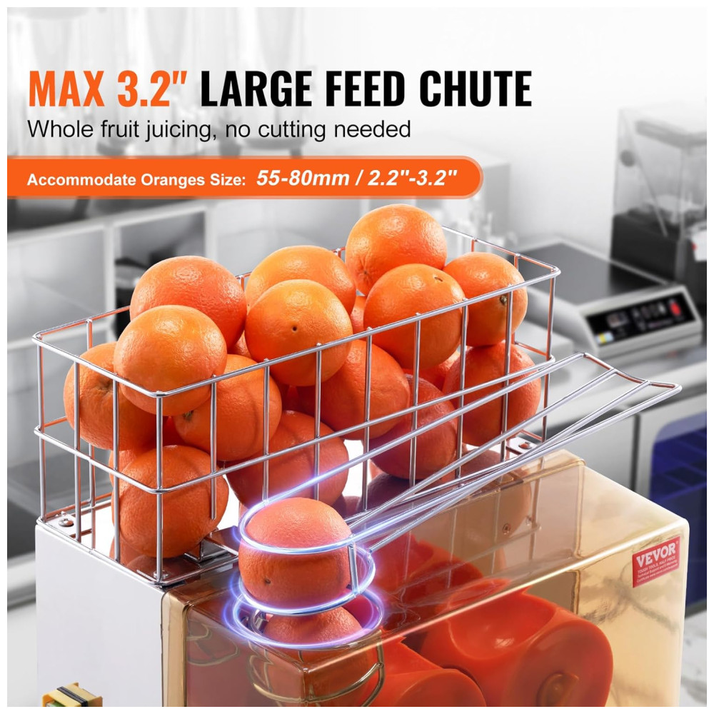 PROCESSAMENTO EFICIENTE Uma grande cesta de zenamento é anexada à parte superior da máquina para uma alimentação eficiente. A máquina de suco é capaz de espremer até 22 30 laranjas dia. 40 80mm. As bolas côncavo convexas aprimoradas ajudam a aumentar o rendimento do suco em 5.
