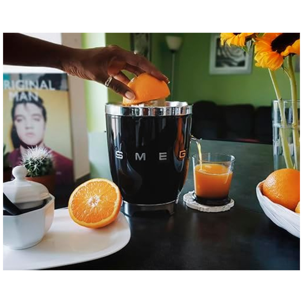 Espremedor de Suco Cítrico SMEG 50s Retro Style com Bico Anti gotejamento Ativação Automática e Coleta Eficiente Preto