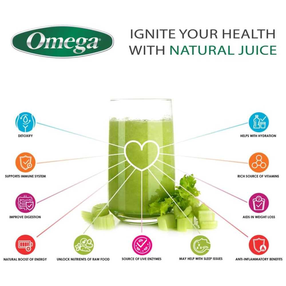Acelere sua saúde com o suco de aipo natural que desintoxica, melhora a digestão, fornece um impulso natural de energia e muito mais. O MM900HDS é um espremedor de mastigação de baixa velocidade com uma nova tampa projetada para fazer suco de aipo. O MM900HDS permite que você zene seu suco por até 72 horas. Como um impulsionador imunológico natural, os Omega Cold Press Juicers fornecem uma dose potente de antioxidantes para aumentar e apoiar a saúde e a imunidade em geral. O suco da prensa a frio é uma das maneiras mais eficazes de acessar facilmente enzimas nutritivas que ajudam a melhorar a imunidade e a saúde geral. Não coma suas frutas e vegetais faça um suco deles Consiga um dia de vitaminas em um suco delicioso