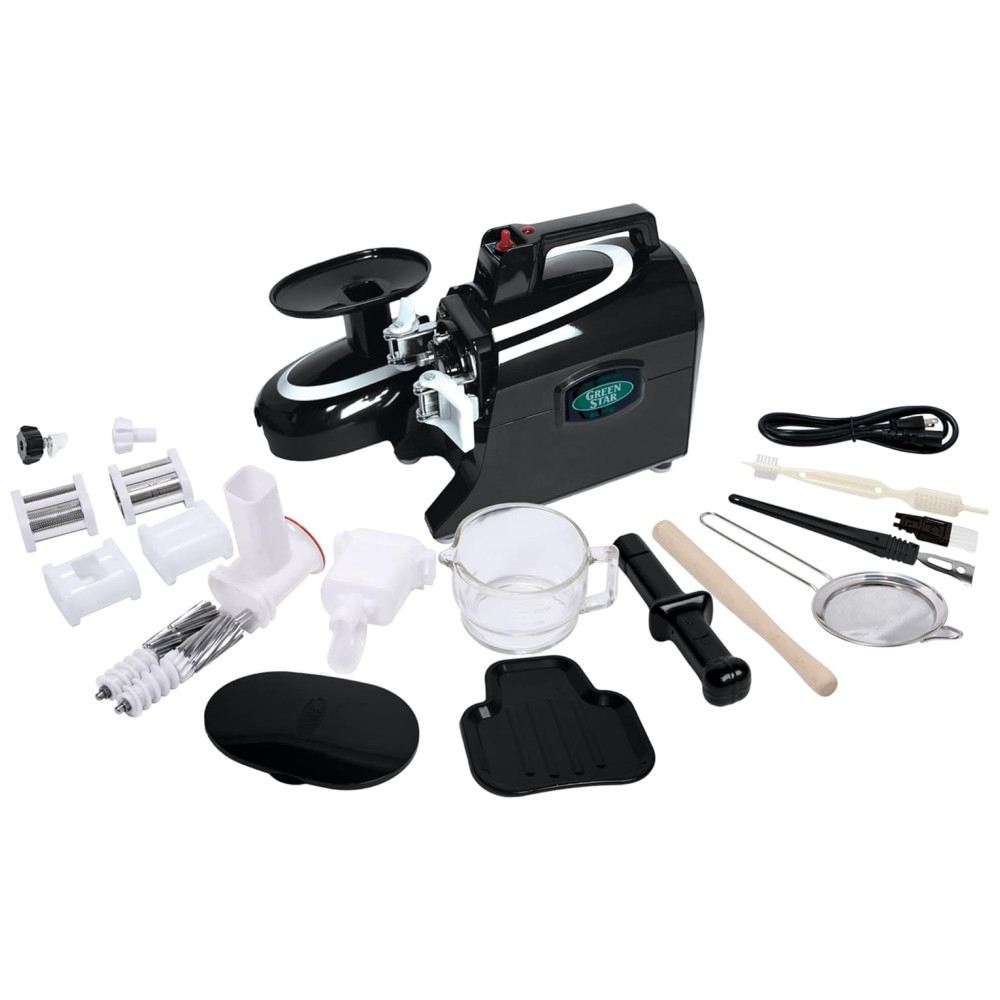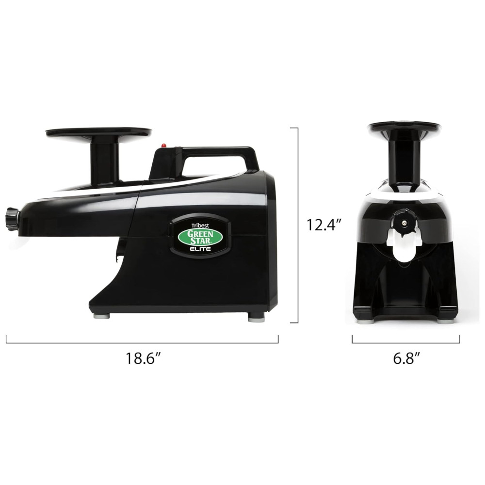 Cor preto. Maximize o rendimento e a qualidade de seus sucos verdes, vegetais e de frutas com o Juicer lento Tribest Greenstar Elite Cold Press Masticating Complete Jumbo Twin Gear. Você também pode usar o extrator de suco Greenstar Elite para fazer outros alimentos deliciosos com os acessórios de homogeneização incluídos, como alimentos para bebês, palitos de pão, manteigas de nozes, sorvetes de frutas congelados e muito mais O Greenstar Elite Slow Juicer libera a melhor nutrição que a natureza tem para oferecer, utilizando avançadas engrenagens gêmeas magnéticas bio cerâmicas, para obter o máximo de nutrientes e rendimento de suco de seus produtos. A forma e as propriedades exclusivas das Jumbo Twin Gears da Greenstar Elite extraem mais suco e têm um desempenho melhor do que outros espremedores Twin Gear, centrífugos ou prensadores a frio. O espremedor lento de mastigação completo Greenstar Elite para prensas a frio é o melhor extrator de suco de engrenagem dupla para maximizar o valor nutricional e o rendimento de todas as suas frutas, verduras e verduras. Diferentemente dos espremedores centrífugos que oxidam seu suco durante a extração, o Greenstar Elite é um espremedor lento e de prensagem a frio que funciona a 110 RPM, preservando a qualidade de sua produção para que você possa desfrutar de todos os benefícios saudáveis do suco. As engrenagens gêmeas exclusivas são feitas de aço inoxidável e nylon resistente a manchas para durabilidade e limpeza fácil. Eles são patenteados especialmente com a tecnologia magnética de biocerâmica que não é encontrada em outros espremedores de duas engrenagens ou de trado único que criam um campo magnético à medida que você sumo, para que seu suco seja mais facilmente absorvido pelo corpo e permaneça fresco por mais tempo até 72 horas Enquanto outros espremedores afirmam ser mastigadores, o Greenstar Elite Juicer é realmente um extrator completo de sucos mastigatórios assim como temos três tipos diferentes de dentes que executam 3 funções diferentes que iniciam o processo digestivo, as engrenagens gêmeas Greenstar Elite têm 3 estágios mastigação, tornando este espremedor um espremedor de mastigação completo
