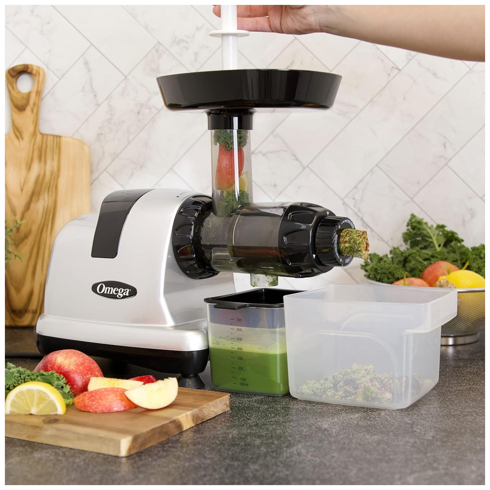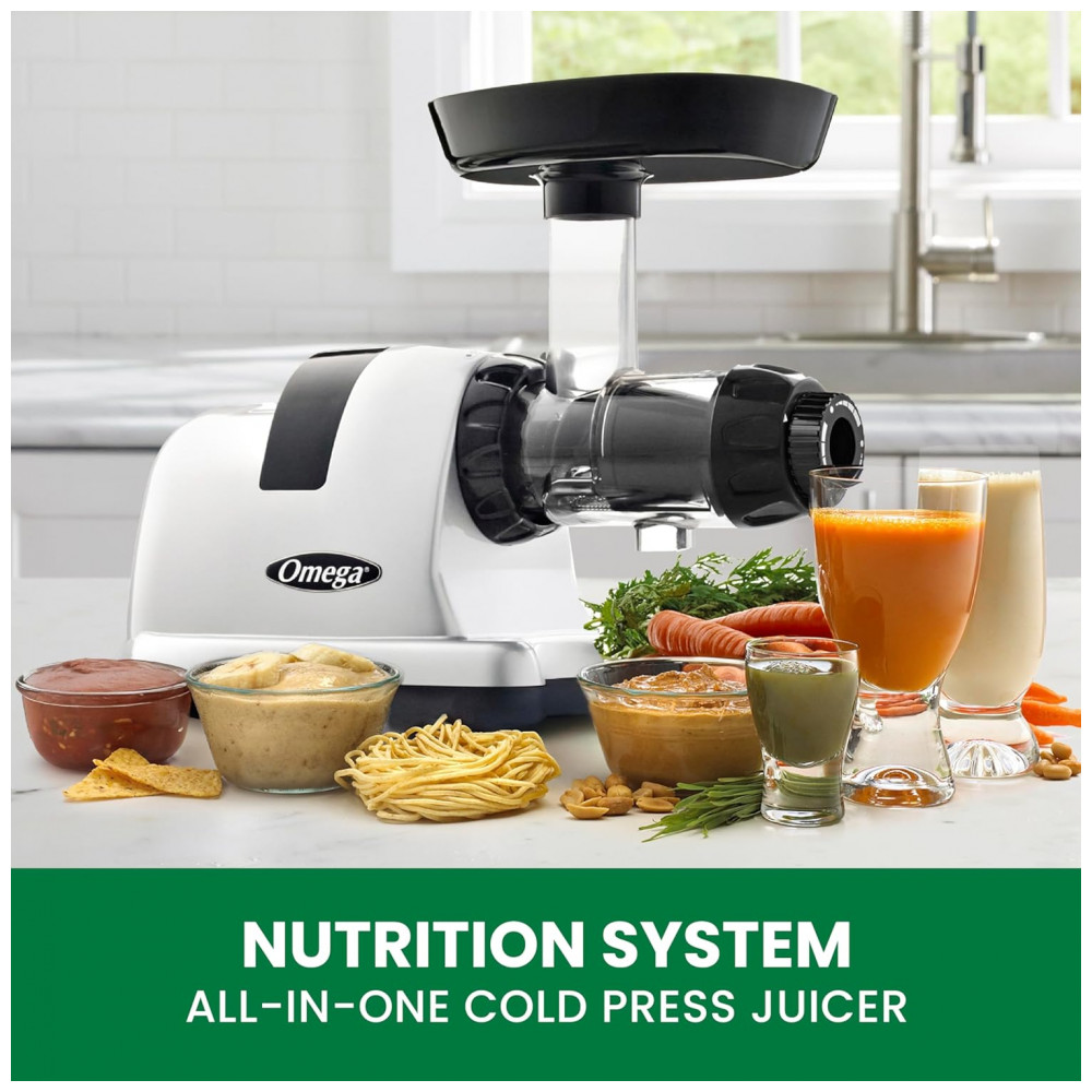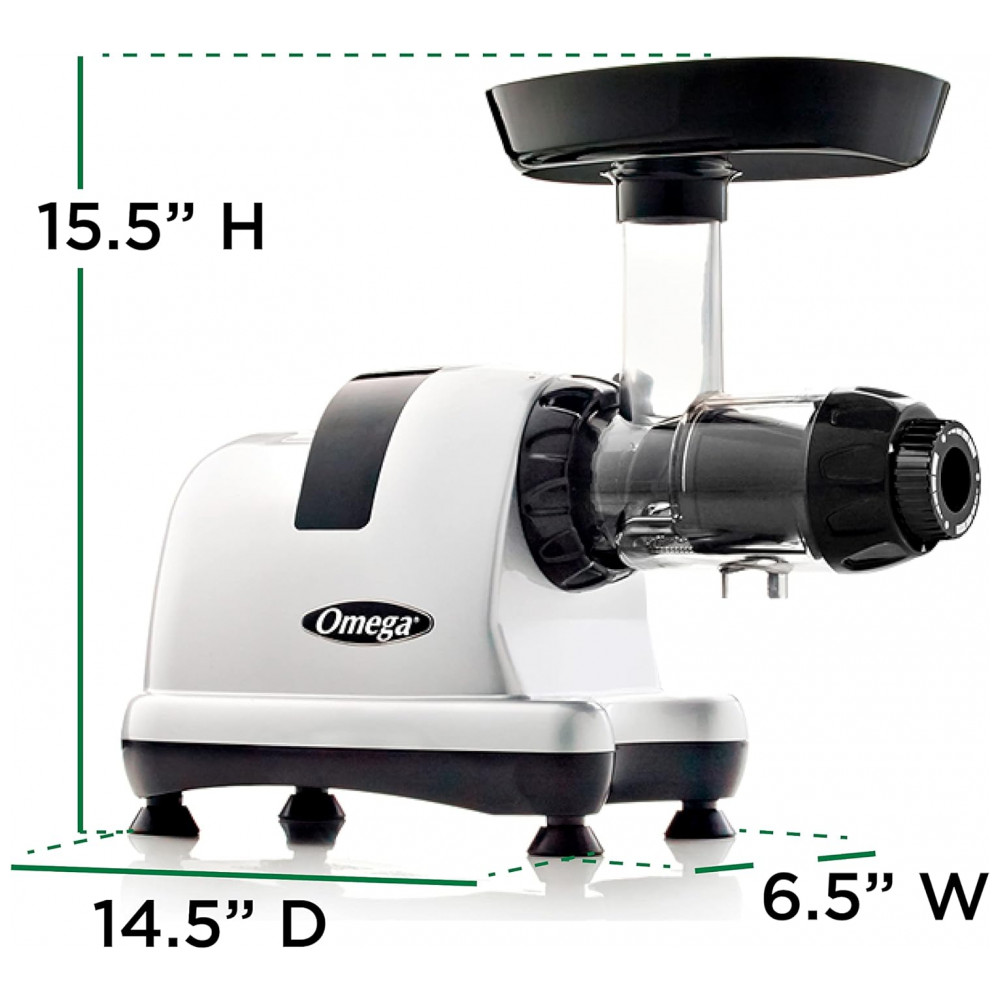 O centro de nutrição Omega J8006 é um espremedor de frutas mastigador. Às vezes chamado de espremedor de baixa velocidade, o centro de nutrição processa a 80 rpm, enquanto a maioria dos outros espremedores processa a uma velocidade de 1, 650 a 15, 000 rpm. A baixa velocidade protege e mantém enzimas saudáveis, evita a oxidação e permite que o suco seja zenado por até 72 horas sem degradação. O trado Ultem é 8x mais forte que a maioria dos outros plásticos e a poderosa redução de engrenagem é equivalente a um motor de 2HP. O sistema de processamento de suco de dois estágios extrai a quantidade máxima de suco de frutas, vegetais, folhas verdes e até mesmo grama de trigo Você também pode usar o centro de nutrição para transformar nozes em manteigas de noz uma manteiga de amendoim natural, fazer comida para bebê a partir de ingredientes naturais e frescos, preparar leite de soja, extrudar macarrão, moer café e especiarias e triturar ervas e alho. Faça bebidas e lanches deliciosos e nutritivos que todos irão adorar. O uso de mais alimentos congelados frutas, sorvetes etc. do que líquidos faz com que os alimentos grudem nas laterais dos potes do liquidificador ou a mistura fique rígida congelada e não flua. A peneira de suco já está instalada na nota do espremedor é esperado algum ruído. Coloque o espremedor em cima de uma toalha fina para ajudar a estabilizar e atenuar o ruído. Como um impulsionador imunológico natural, os Omega Cold Press Juicers fornecem uma dose potente de antioxidantes para aumentar e apoiar a saúde e a imunidade em geral. O suco da prensa a frio é uma das maneiras mais eficazes de acessar facilmente enzimas nutritivas que ajudam a melhorar a imunidade e a saúde geral. Não coma suas frutas e vegetais faça um suco deles Consiga um dia de vitaminas em um suco delicioso
