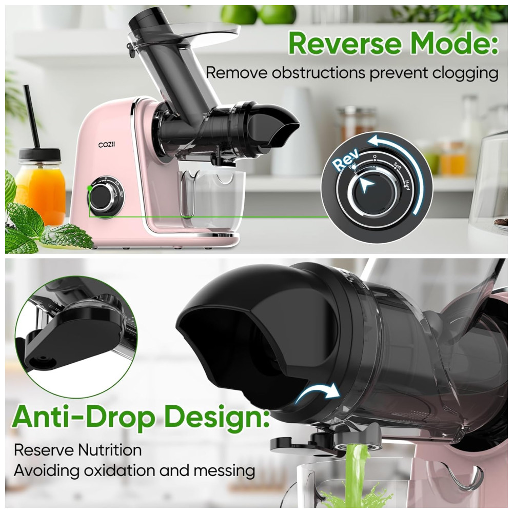 Aproveite ao máximo os nutrientes dos alimentos com o Extrator de Suco COZII Cold Press. Este juicer lento foi projetado para extrair delicadamente a essência de frutas, vegetais e folhas, garantindo bebidas ricas em nutrientes e sabor, sem o calor gerado pelos juicers tradicionais. Seu design de limpeza fácil inclui corpo destacável, além de função de reverso para evitar travamentos. Com operação silenciosa e componentes duráveis, como filtro de malha de aço inoxidável e carcaça de plástico reforçado livre de BPA, este juicer é construído para durar.