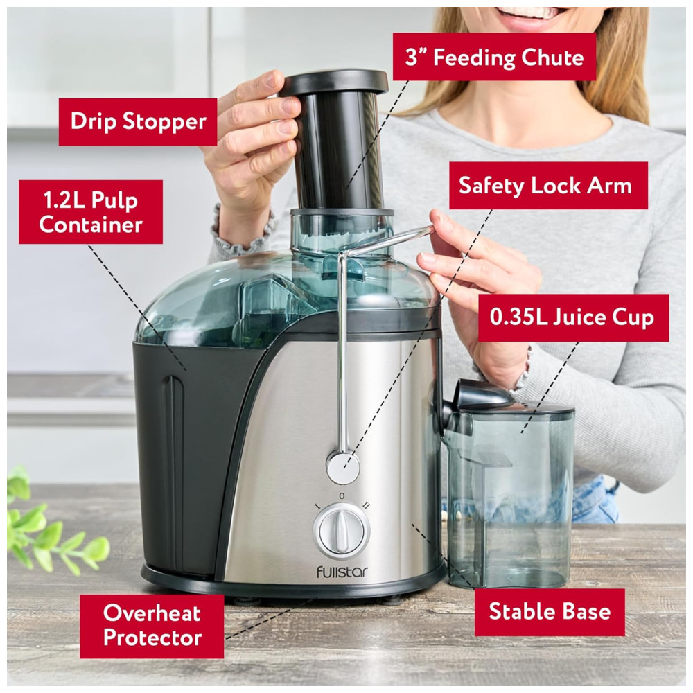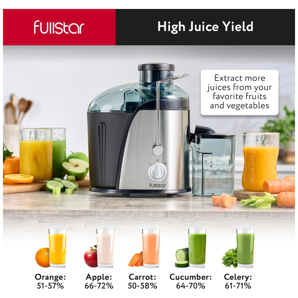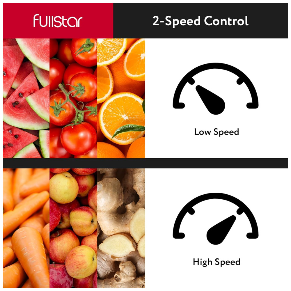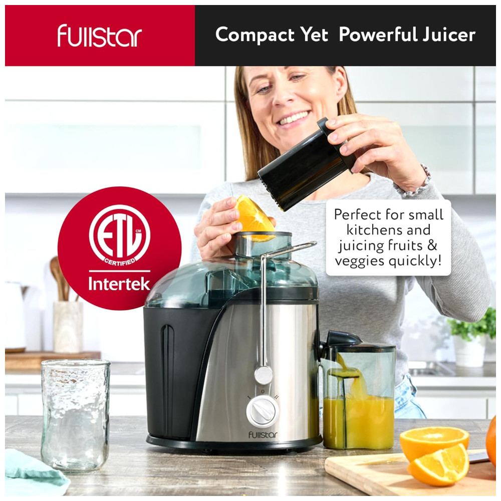 Espremedor de Sucos Fullstar 2 Velocidades Compacto e Sem BPA Preto. Ideal para frutas e vegetais frescos.