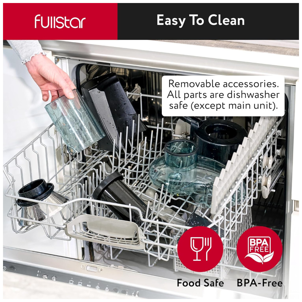 Fácil de Limpar e Livre de BPA – As máquinas de suco de vegetais e frutas da Fullstar são projetadas para fácil manutenção. Desfrute de uma limpeza sem complicações com as partes que podem ser lavadas na máquina de lavar louça (exceto a unidade principal). Lave o cesto do filtro à mão com uma escova de nylon macia.