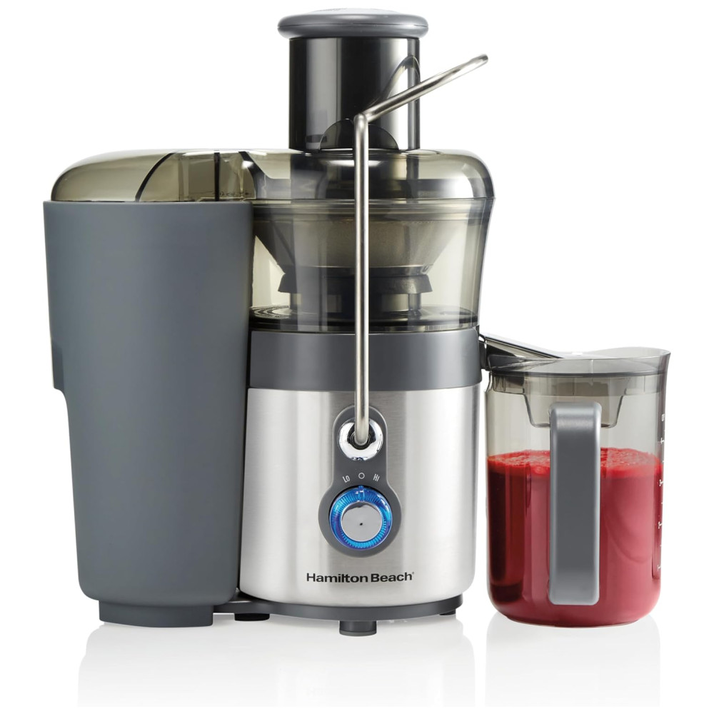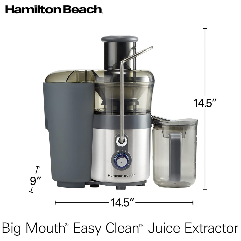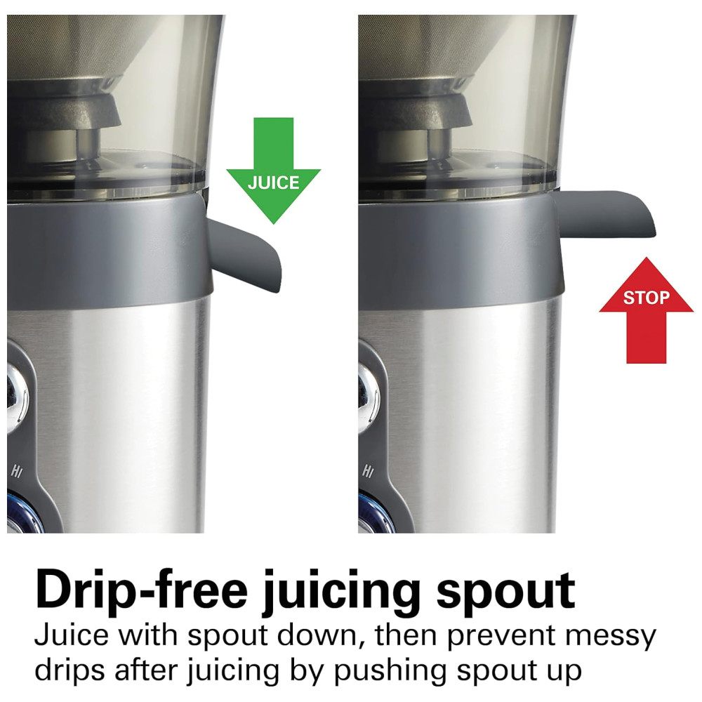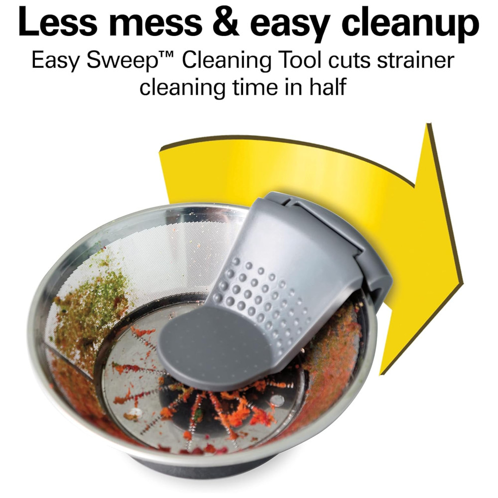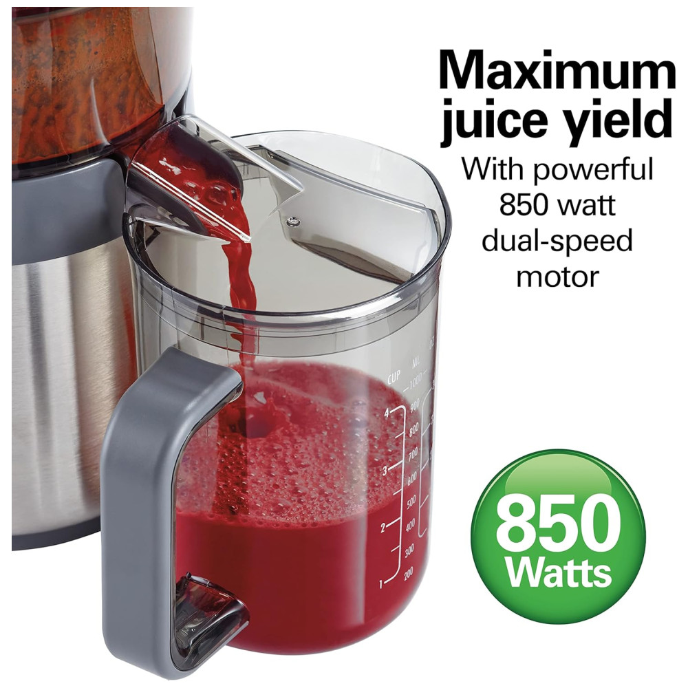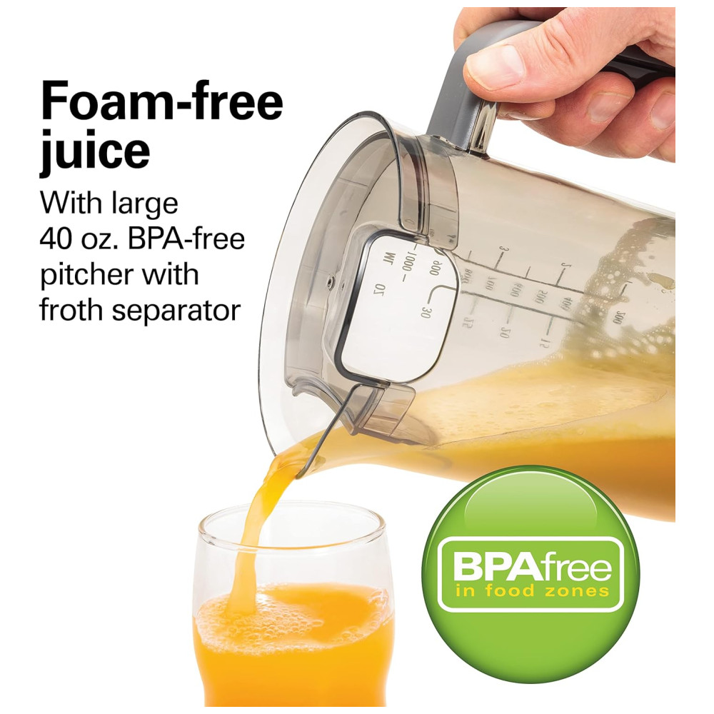 Suco caseiro saudável em segundos. Suco uma variedade de frutas e legumes. Fácil de montar. Jarra sem BPA de 1,13 l com tampa e separador de espuma. Duas velocidades para a máxima quantidade de suco. 850 watts de potência elétrica ajustável de alta a baixa potência. A calha de alimentação extra grande de 7, serve para frutas e vegetais integrais. Ajuste uma maçã inteira, uma laranja descascada ou um punhado de couve. Menos pré corte e suco mais contínuo para suco de frutas frescas, suco de vegetais ou suco de aipo cheio de nutrientes. Corte o tempo de limpeza do filtro pela metade ferramenta de limpeza fácil patenteada incluída