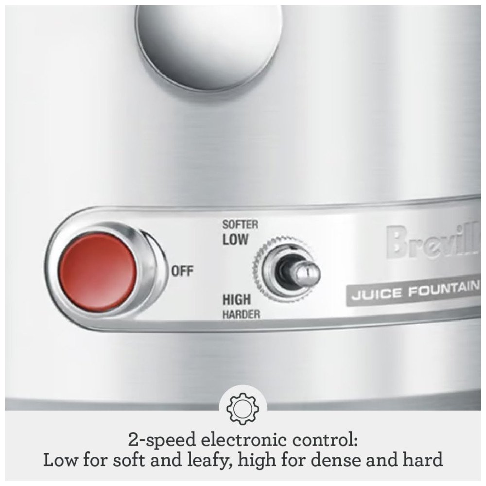 O Breville Juice Fountain Elite permite que você adote o poder dos profissionais Um motor de 1000 watts gira até 13.000 RPMs para fornecer até 30 mais suco do que os espremedores tradicionais Mais de 40.000 poros de filtragem garantem resultados suaves e deliciosos sempre