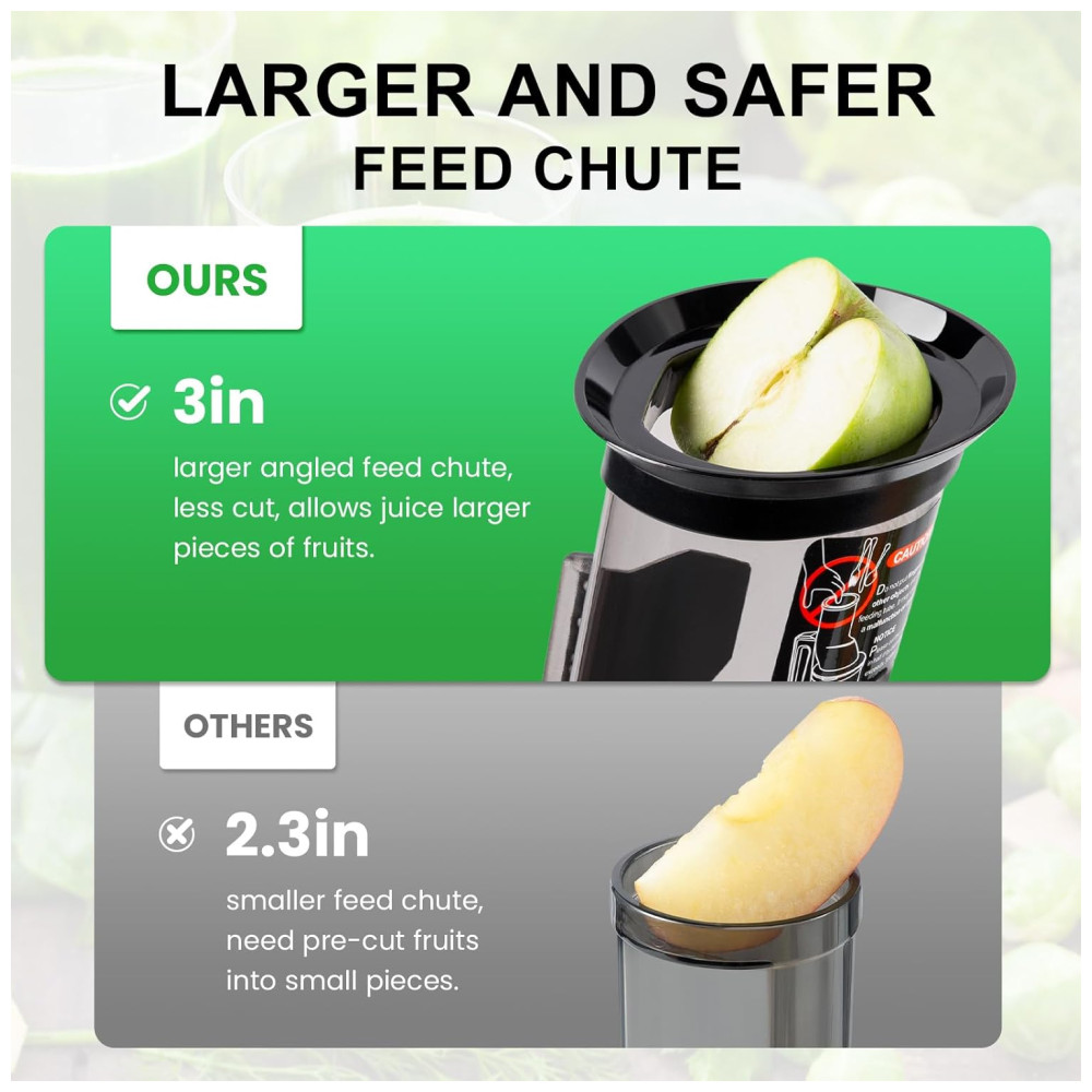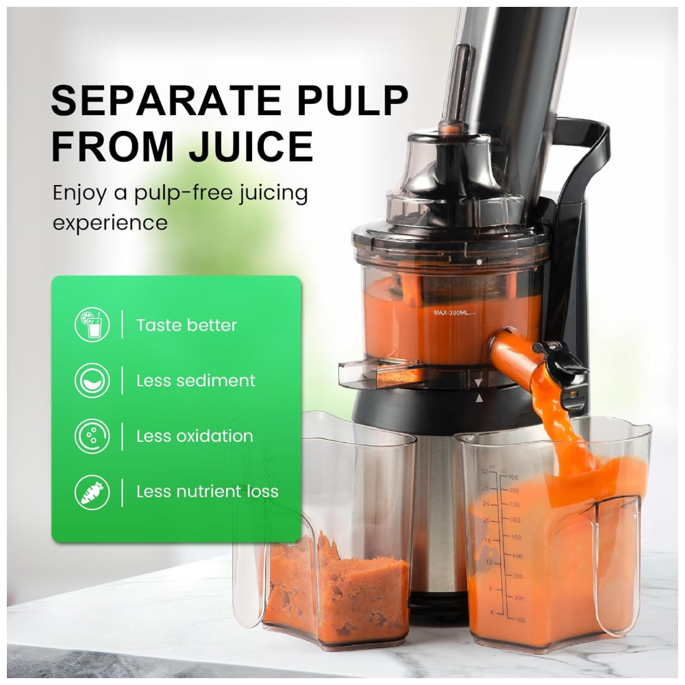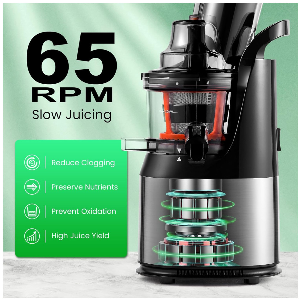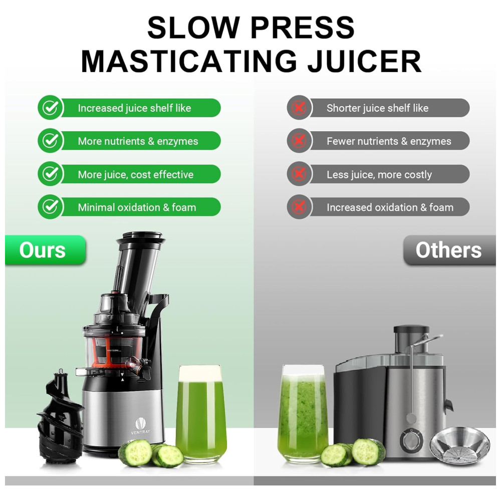 PRESERVE OS NUTRIENTES O espremedor de sumos mastigador Ventray espreme os ingredientes para extrair o sumo enquanto preserva o sabor, a textura e os nutrientes.