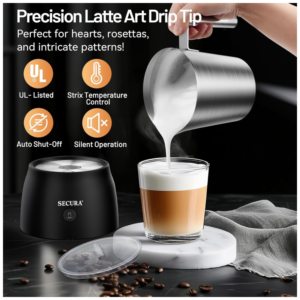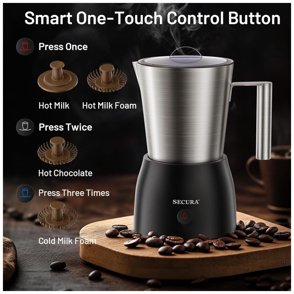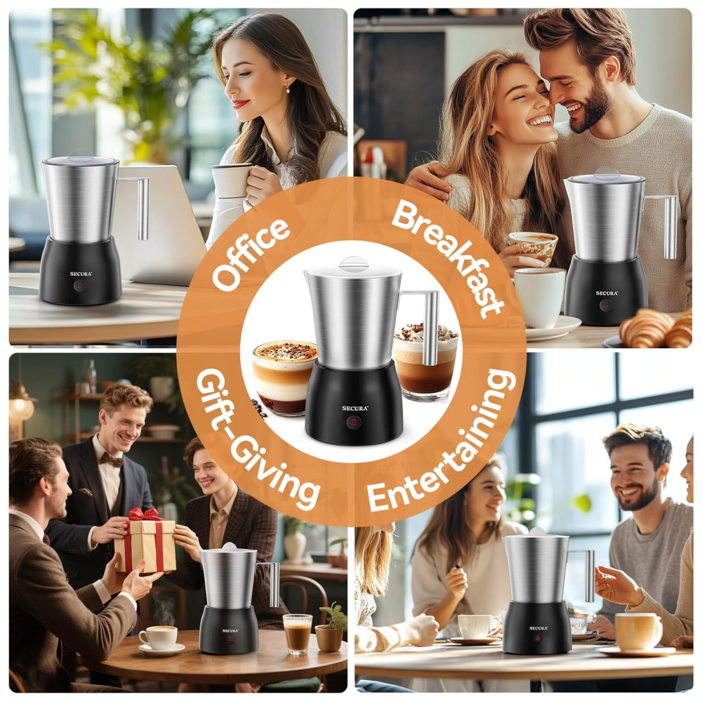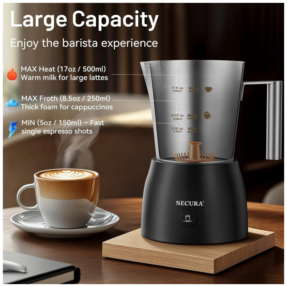 Espumador de Leite e Chocolate Quente com o Batedor de Leite Destacável Secura de 500ml em Aço Inoxidável ClássicoSecura