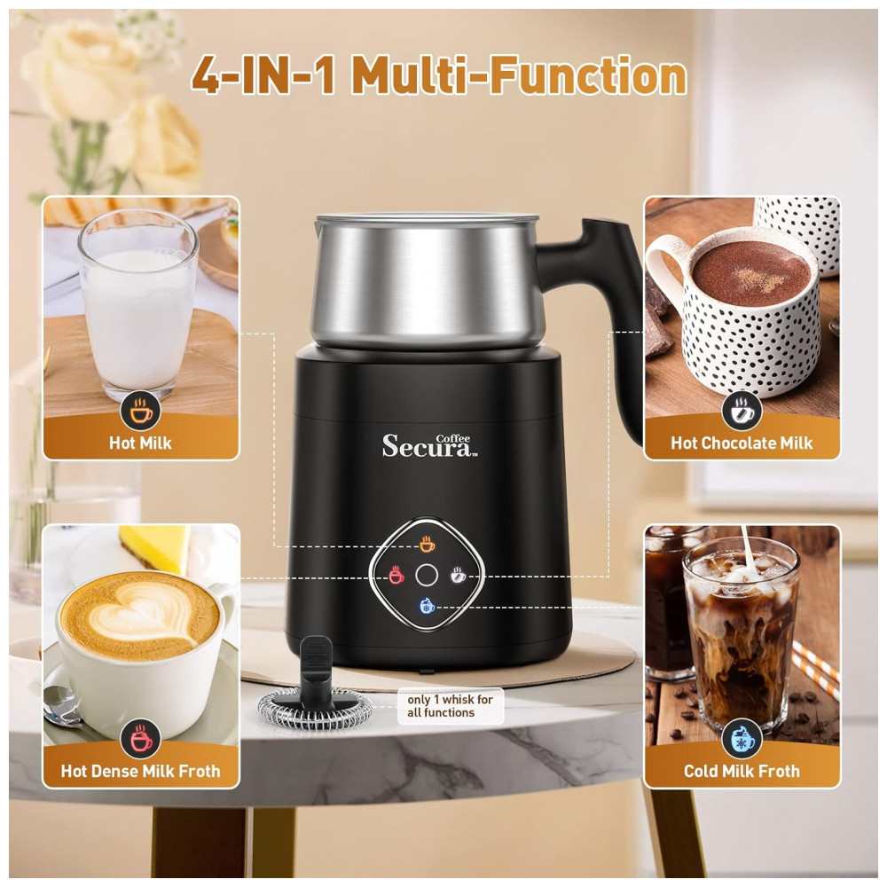 Espumador de Leite Elétrico 4 em 1 com Jarra em Aço Inoxidável 110V Secura Preto