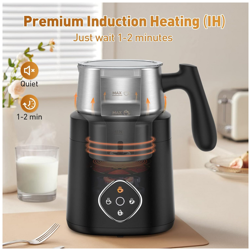 Espumante e aquecimento rápido e silencioso A espuma de leite aveludado está pronta em apenas 1 2 minutos, mais rápido que o aquecimento de resistência tradicional. Nosso batedor de leite para aquecimento por indução IH aquece diretamente o tanque interno usando uma bobina eletromagnética, o que torna o aquecimento mais eficiente, uniforme e silencioso.