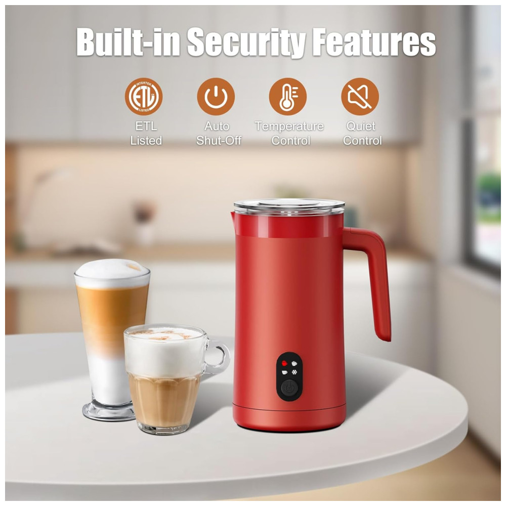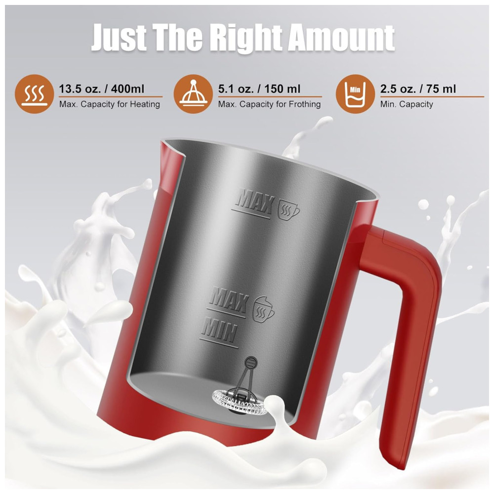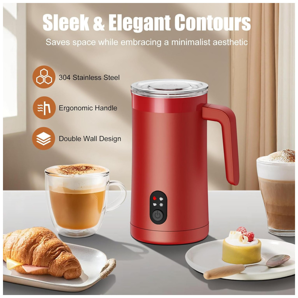Espumador de Leite Elétrico Ovetedot 4 em 1 400ml Vermelha: Crie Espuma Quente e Fria Aqueça e Esquente Leite Automaticamente!