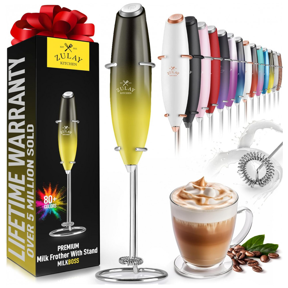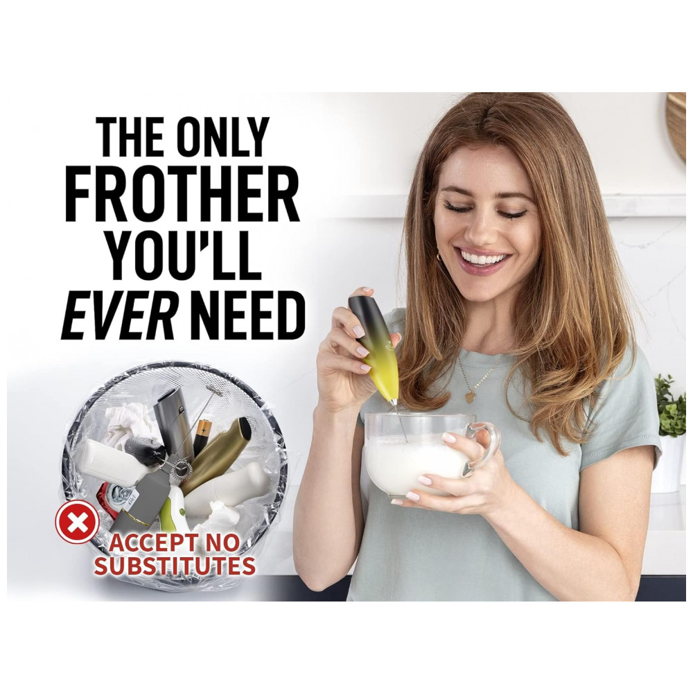 Espumador de Leite Elétrico Portátil em Aço Inoxidável a Pilhas Amarelo e Preto