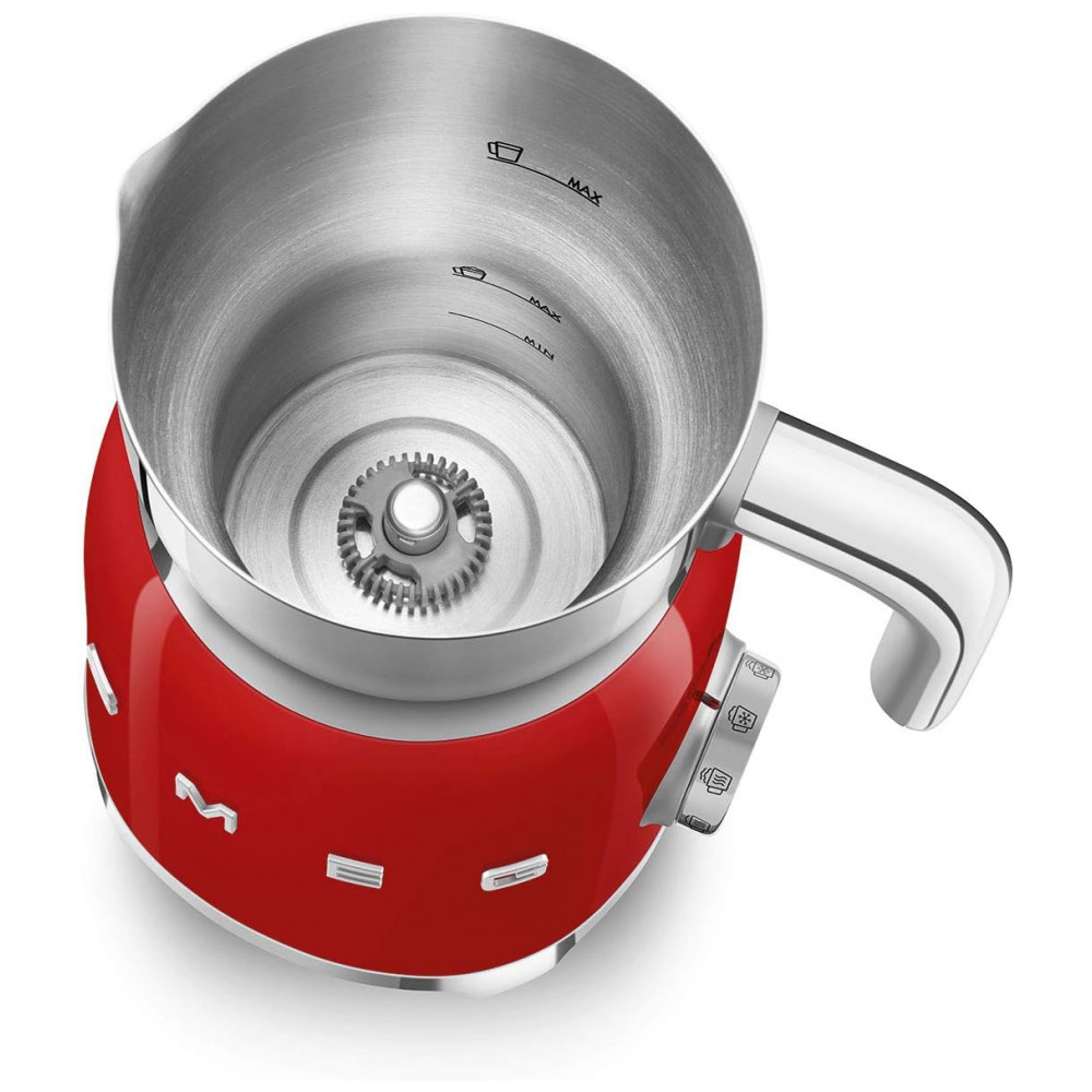 Espumador de leite elétrico Smeg retrô anos 50 vermelho 500W com jarra inox removível e aquecimento por indução 110V