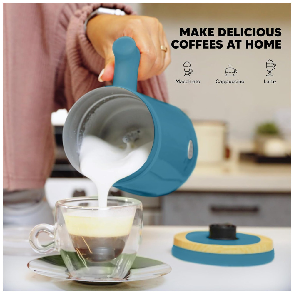 Crie as suas bebidas favoritas de cafetaria no conforto da sua casa com o Starument Milk Frother! Este batedor elétrico permite-lhe preparar a espuma perfeita para cappuccino, mocha, latte e macchiato. Desfrute das suas bebidas espumosas favoritas com um simples toque de botão! Com 4 tipos de espuma, pode ser utilizado em leite quente e frio. Aqueça o leite rapidamente para beber antes de dormir ou adicione-o ao seu café de manhã! Este aquecedor de leite aquece o leite a 65°C em apenas 2 minutos, com capacidade de 300mL. Segurança em Primeiro Lugar – Silencioso e compacto, este batedor de leite instantâneo foi fabricado seguindo os mais elevados padrões de segurança e qualidade, com um cabo de energia curto para reduzir riscos de acidentes. Design Moderno e Elegante – Combina elementos de aço inox, branco e madeira, proporcionando um design elegante e minimalista que irá complementar qualquer cozinha, despensa ou casa.