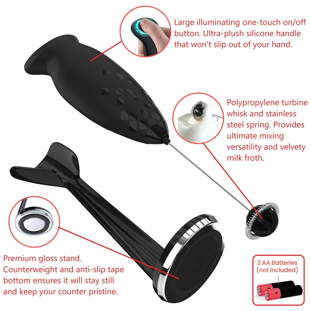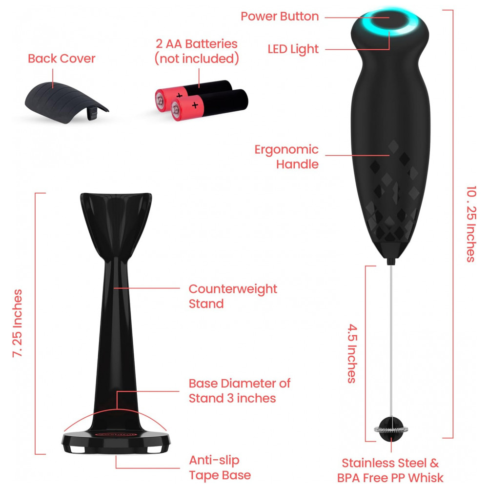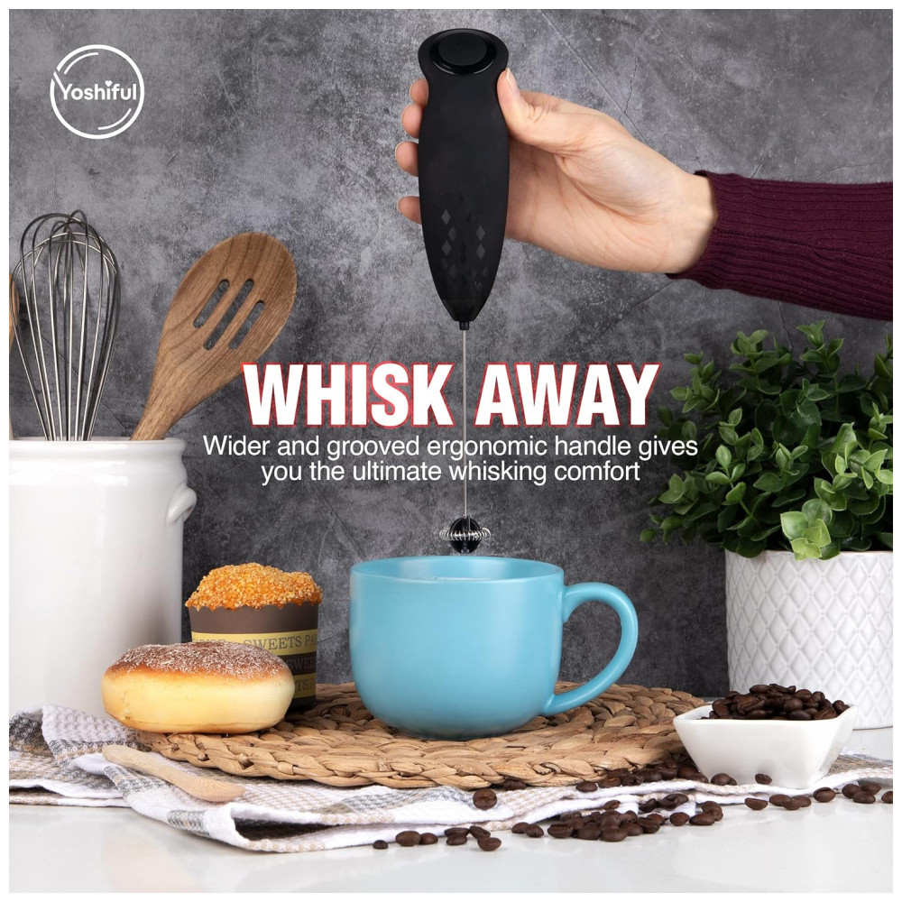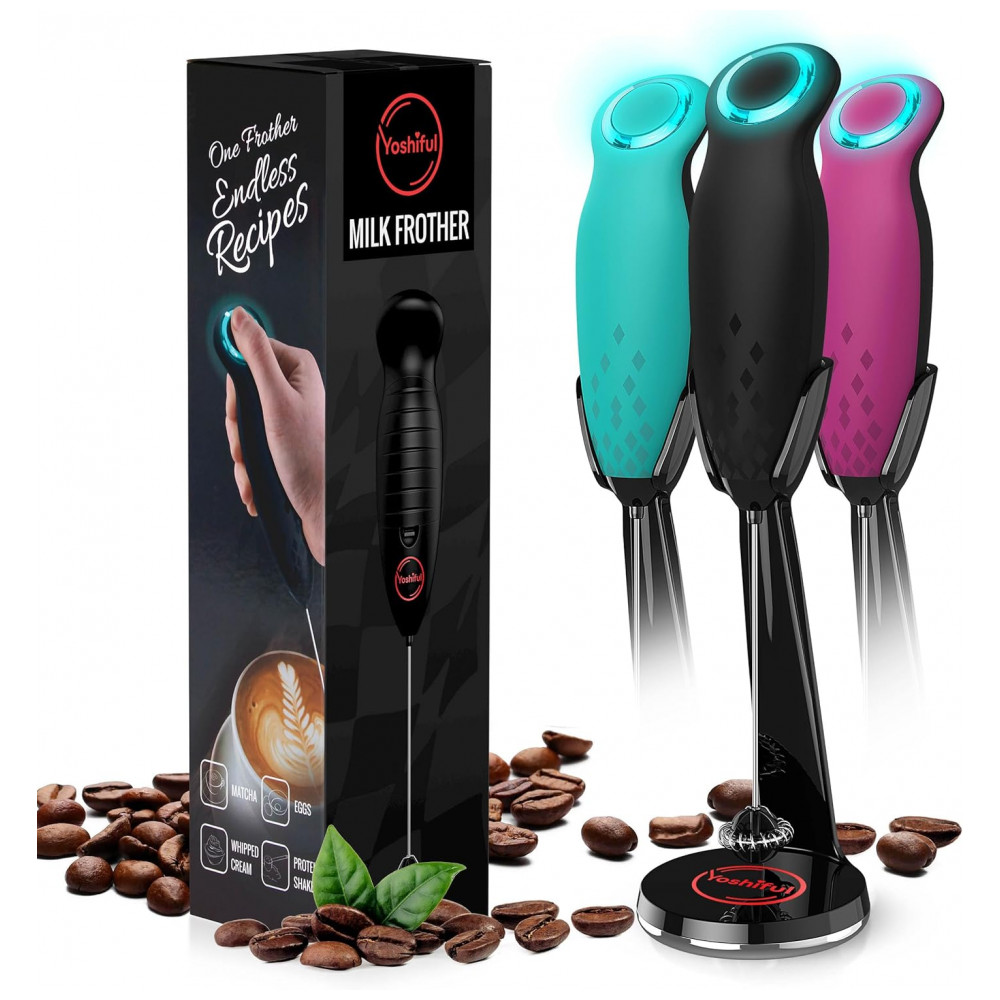Espumador de Leite Elétrico9 Portátil Movido a Pilhas com Suporte YOSHIFUL Preto