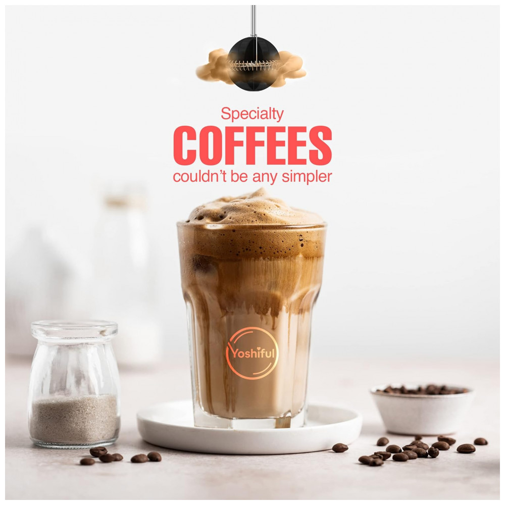 MELHORES DO QUE SEU BARISTA Seus cafés estão prestes a se tornar muito mais espumosos O espuma YOSHIFUL usa um batedor de turbina exclusivo para criar a espuma mais luxuosa e rica em creme para todas as suas bebidas favoritas