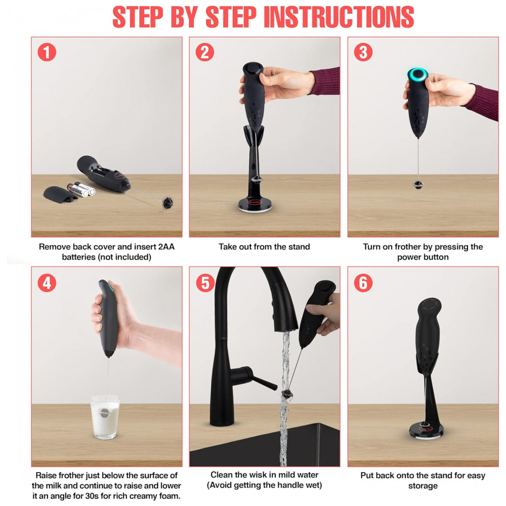LIMPEZA E LOJA EM SEGUNDOS Execute o batedor sob água morna e gire para secar é isso Este espumador para café vem com um suporte antiderrapante e elegante para acesso rápido, para elevar sua espuma