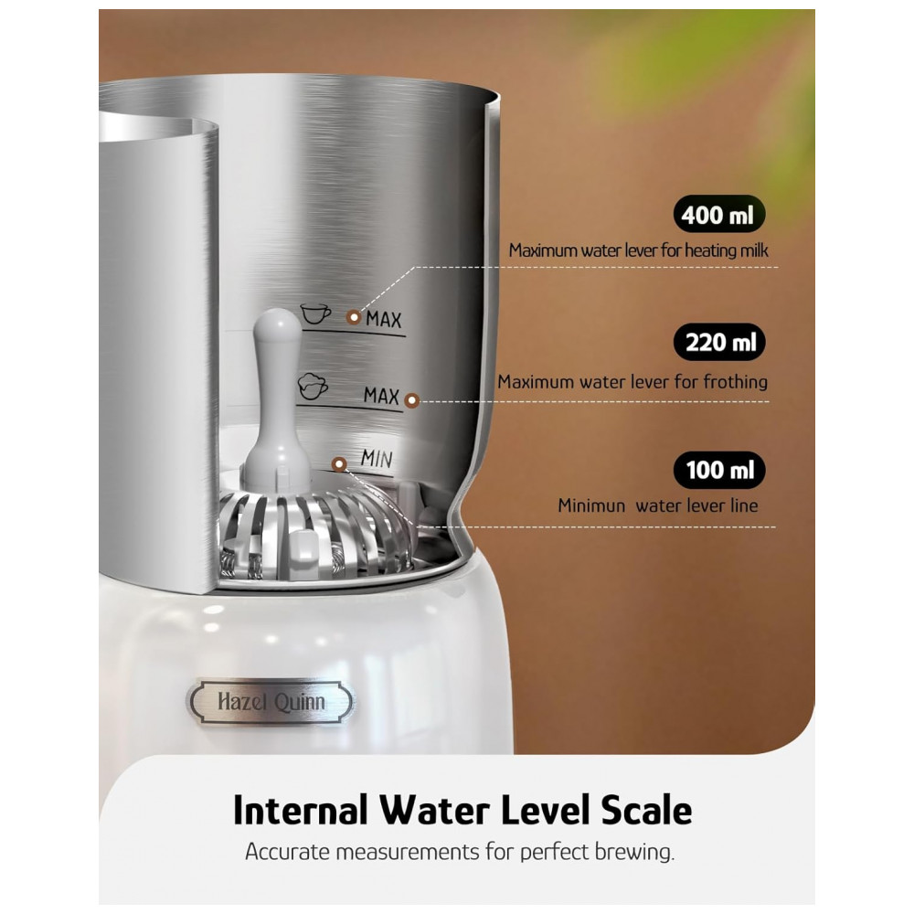 Espumador de Leite Hazel Quinn Branco Pérola 400mL Inox 5 em 1 Aquecer e Espumar 550W 110V