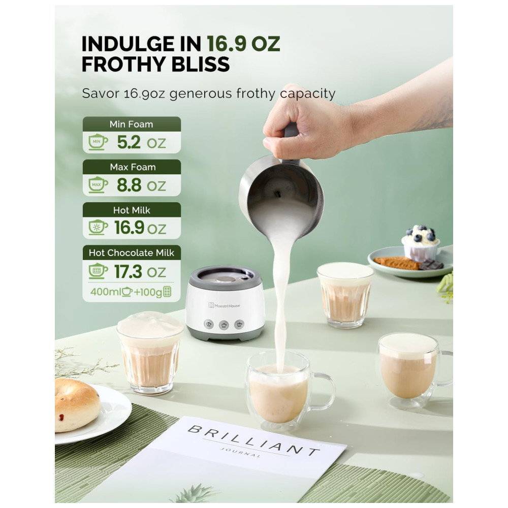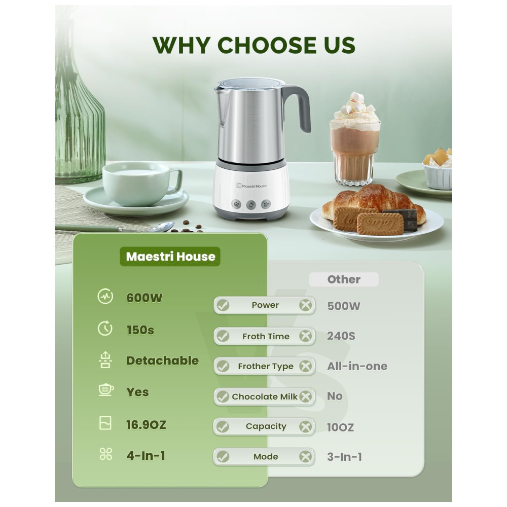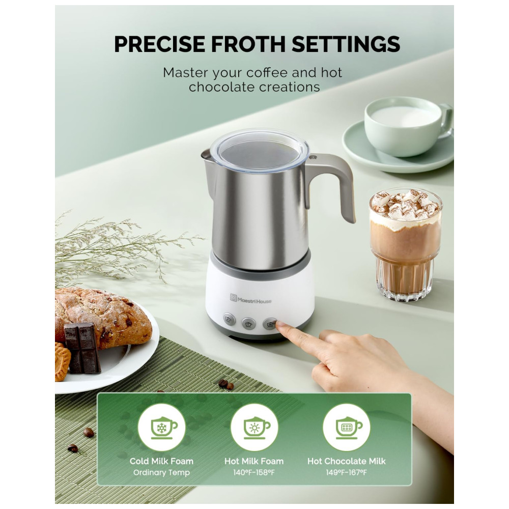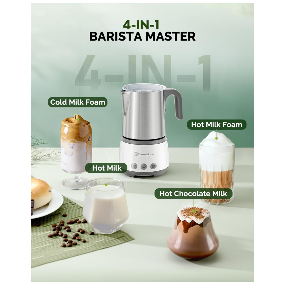 Espumador de Leite Maestri House: Aparelho 4 em 1 Elétrico para Espumar e Aquecer Leite 600W com Função de Memória para Latte