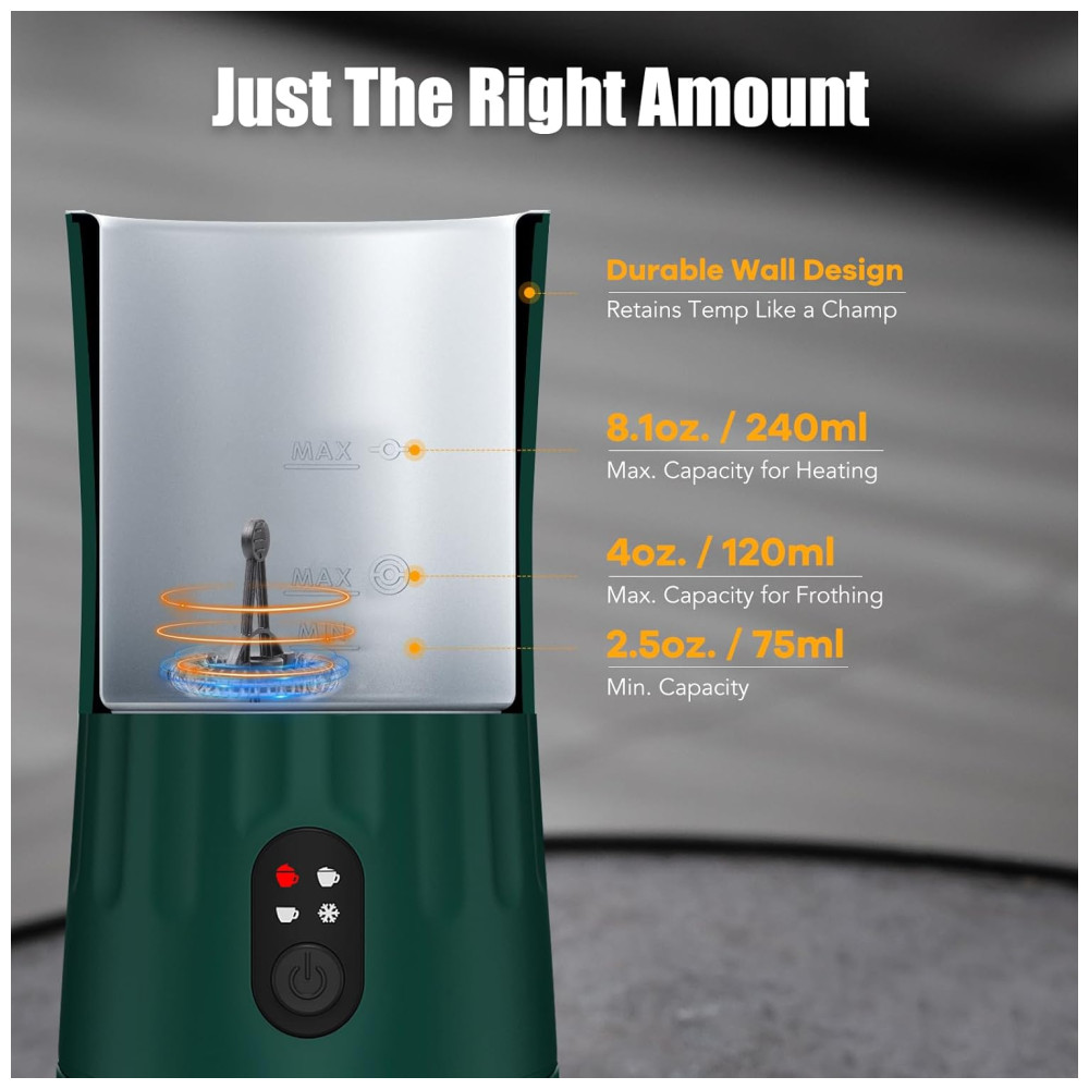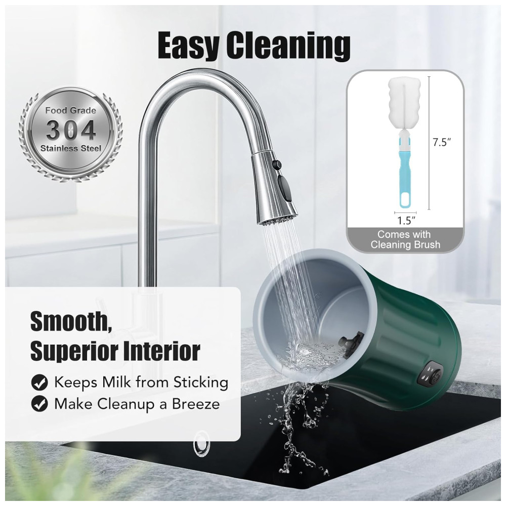 Espumador de Leite Multifuncional 4 em 1 com Controle de Temperatura e Desligamento Automático para Café Latte Cappuccino e CháOvetedot
