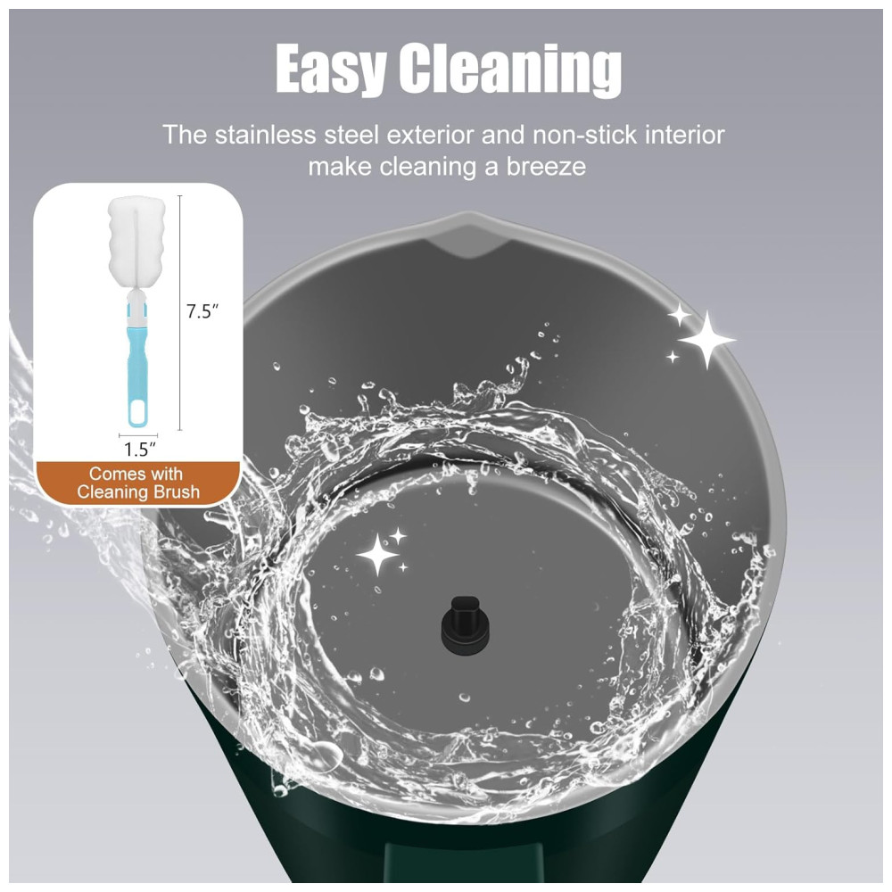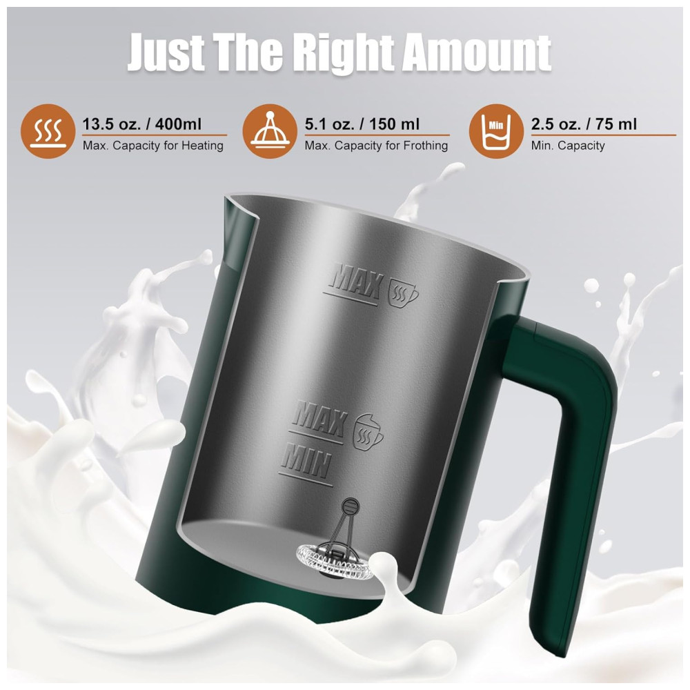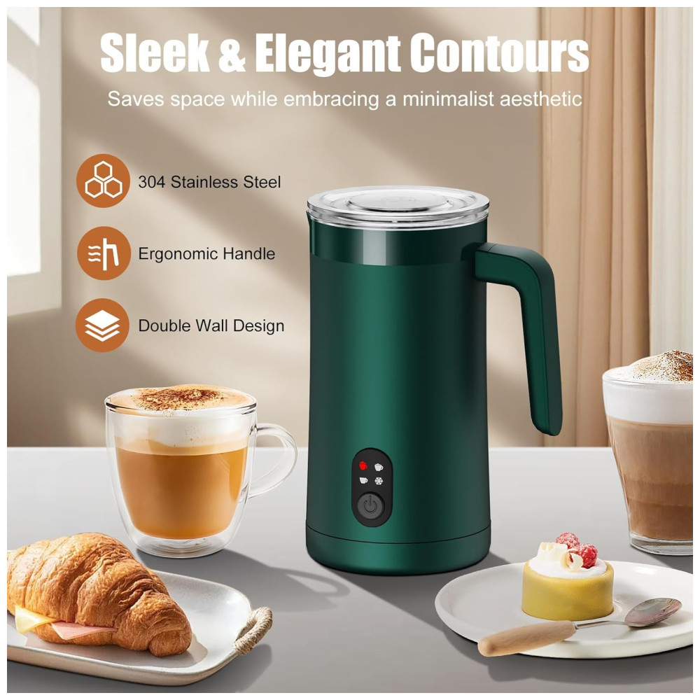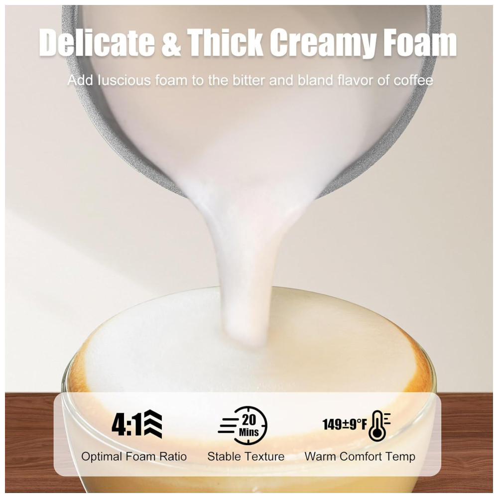 Desfrute de uma experiência completa com o Batedor de Leite 4 em 1 da Ovetedot. Com capacidade para criar espuma densa e quente, espuma quente e arejada, espuma fria e leite aquecido, você poderá facilmente preparar lattes, cappuccinos, matcha ou café gelado de acordo com suas preferências. Com capacidade de aquecimento de 400ml e capacidade de espuma de 150ml, você terá espuma suficiente para 2 xícaras de cappuccino ou 3 xícaras de latte. Seja seu próprio barista, aproveitando a eficiência do motor que produz 50% a mais de espuma do que outros modelos. Operação silenciosa e conveniente com controle de temperatura e desligamento automático, garantindo segurança e facilidade de uso. Feito de materiais de qualidade alimentar, fácil de limpar e resistente a arranhões, este batedor de leite proporciona momentos de café perfeitos em casa.