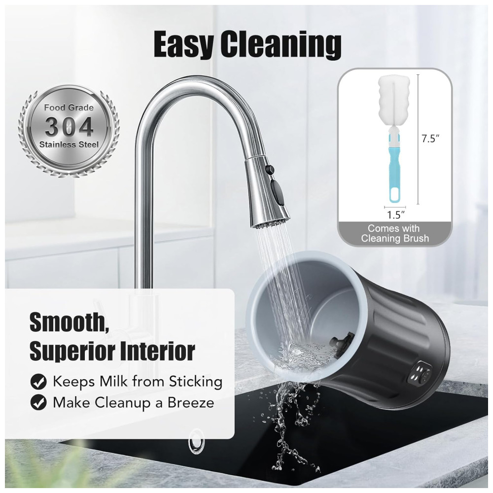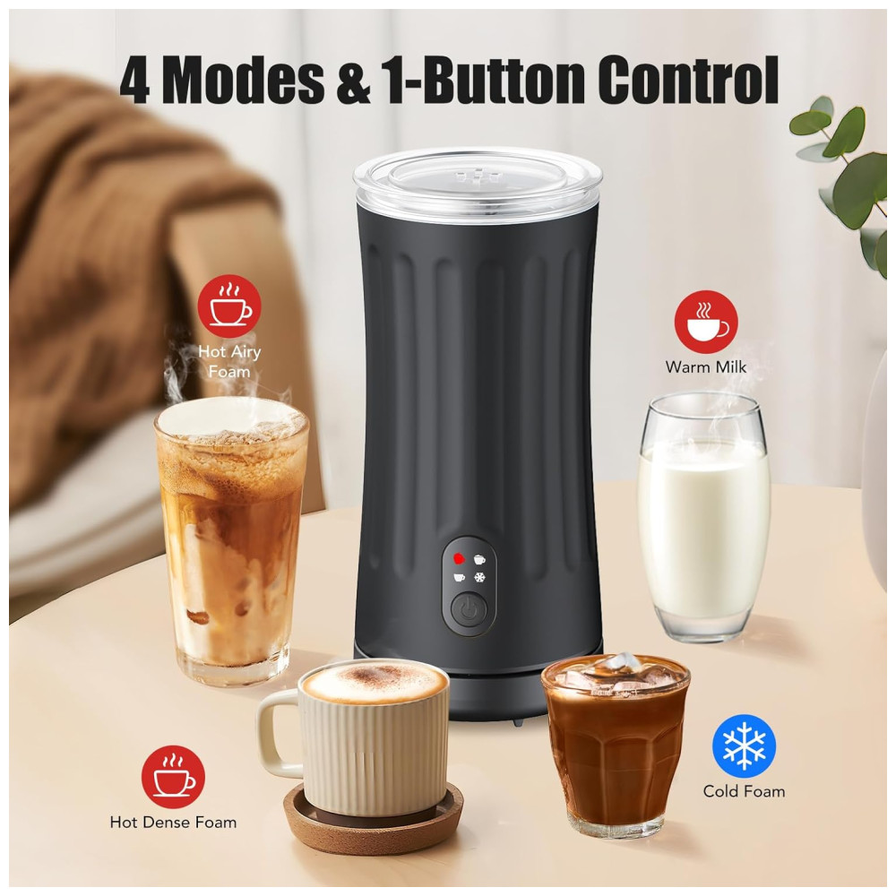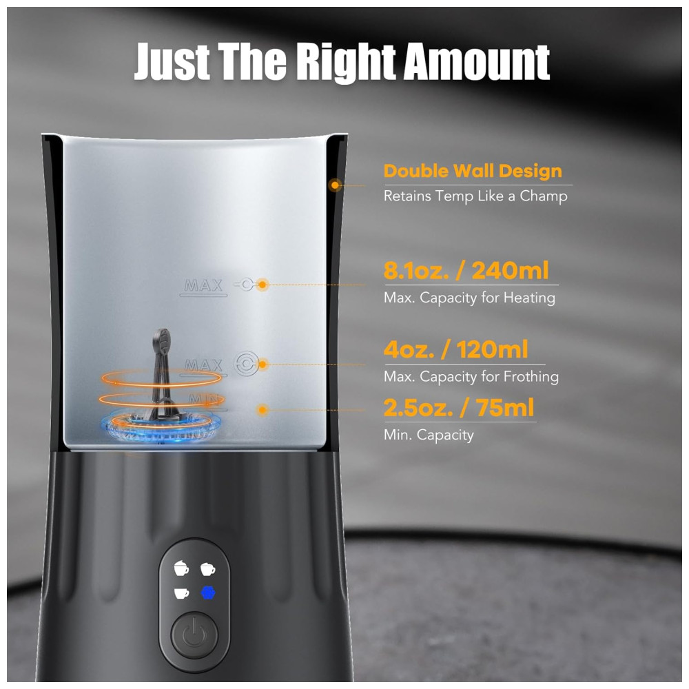 Espumador de Leite Ovetedot 4 em 1 com Aquecedor Controle de Temperatura Desligamento Automático Preto 240ml