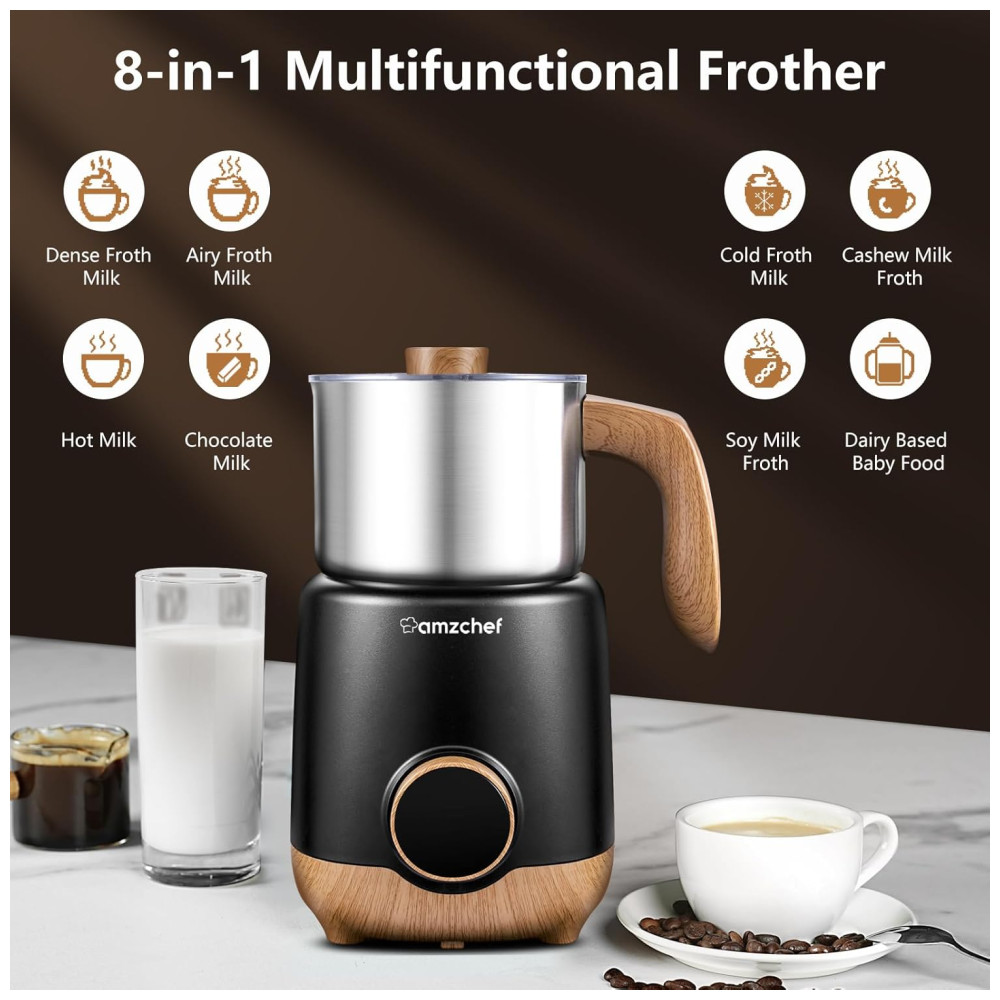 Espumador e Aquecedor 8 em 1 AMZCHEF 550W Jarro Inox 600ml para Preparar Latte Cappuccino Espuma e Leite Quente