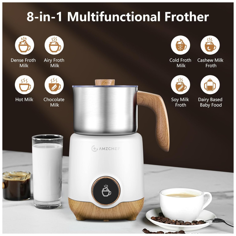 Espumador e Aquecedor de Leite AMZCHEF 8 em 1 550W 600ml em Aço Inox Automático – Ideal para Latte Cappuccino e Espuma Quente