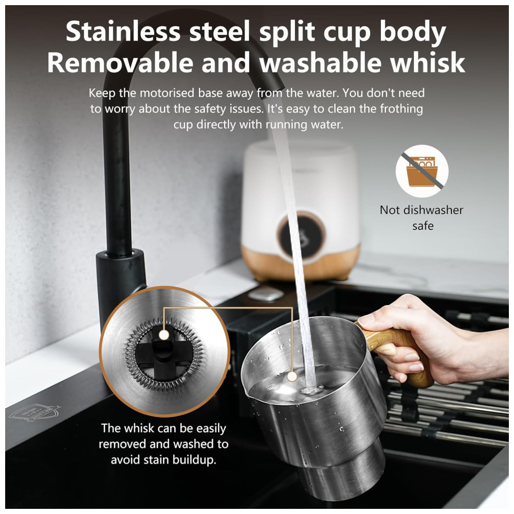Componentes Incluídos: Jarra de Leite de 21 oz Lavável em Máquina de Lavar Louça, Manual do Usuário, 1 Conjunto de Batedor, Base de Energia de 550W,