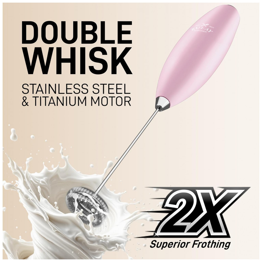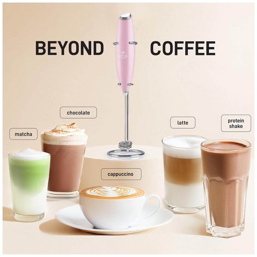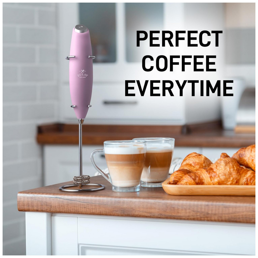 Espumador Elétrico de Leite a Bateria com Suporte ZULAY KITCHEN Twin Whisk 12500 RPM Rosa
