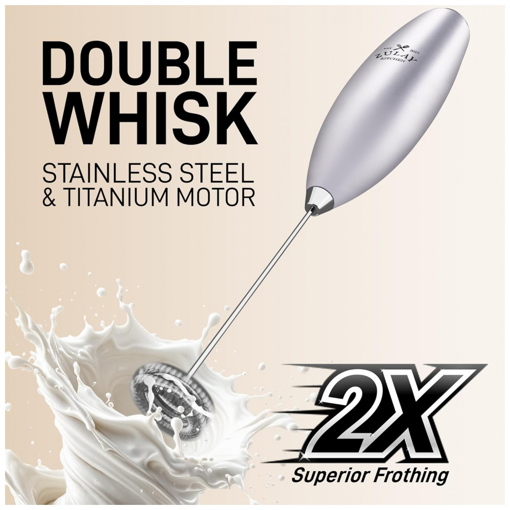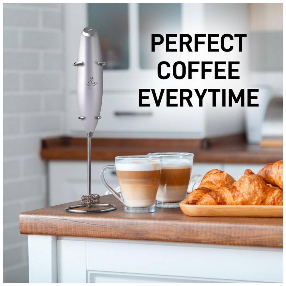 Espumador Elétrico de Leite em Aço Inoxidável a Bateria com Suporte ZULAY KITCHEN Twin Whisk 12500 RPM Prateado
