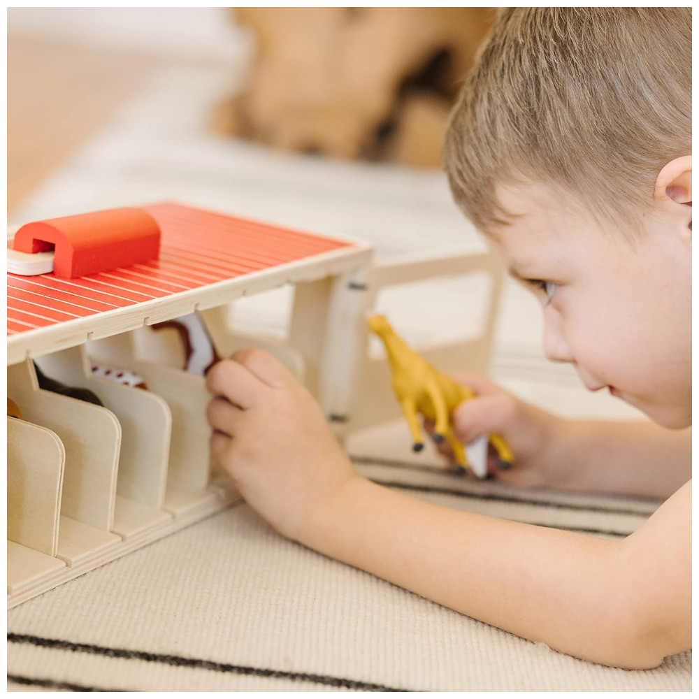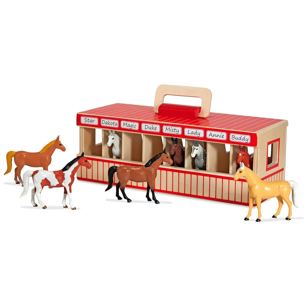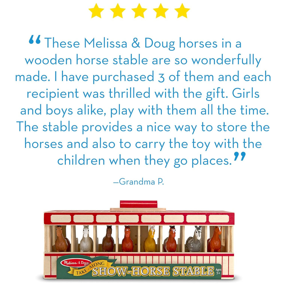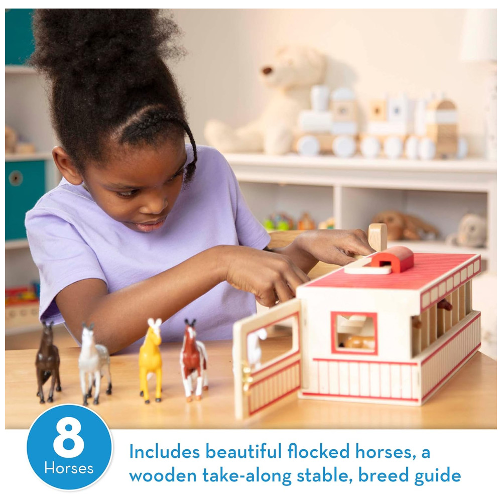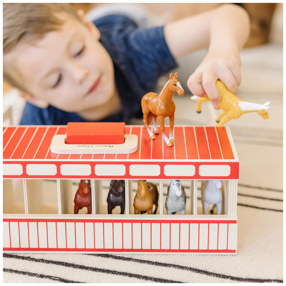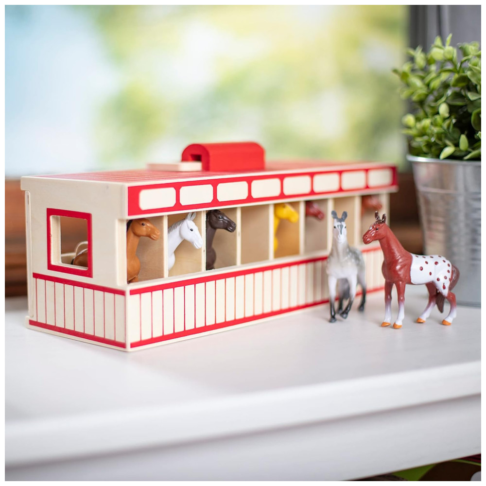 Estábulo para Cavalos de Exposição com Caixa de Madeira e 8 Peças para Crianças Acima de 3 Anos Melissa & Doug