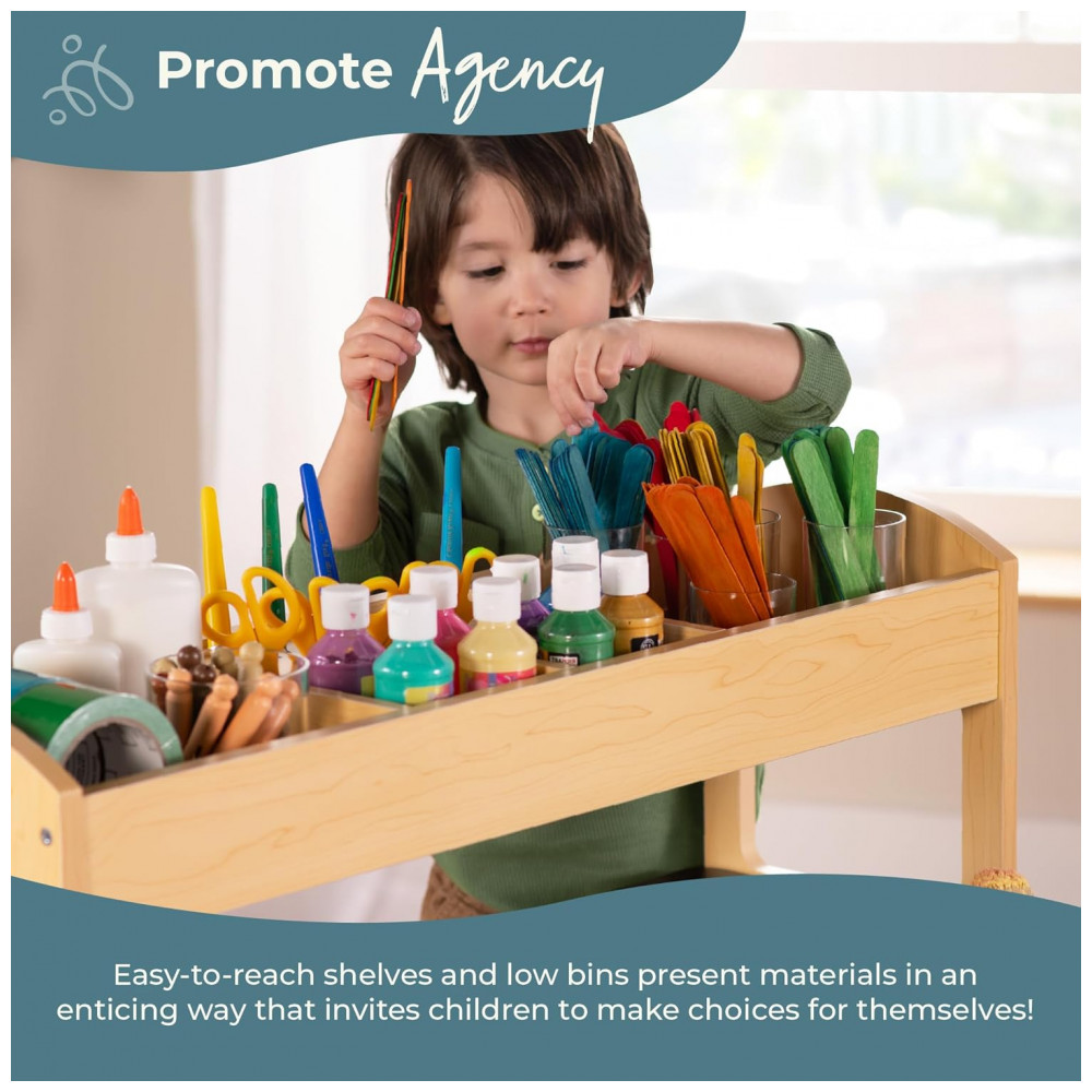 Desde 1966, a Guidecraft desenvolve mobiliário infantil e brinquedos educativos focados em ambientes de aprendizagem ativos, com mesas de arte, organizadores e estações de criação projetadas para escolas e casas. O Deluxe Art Center segue essa linha ao oferecer uma estrutura robusta com pernas em madeira maciça e superfícies em birch/laminado, desenhada para suportar uso intenso mantendo os materiais organizados e acessíveis para autonomia das crianças.