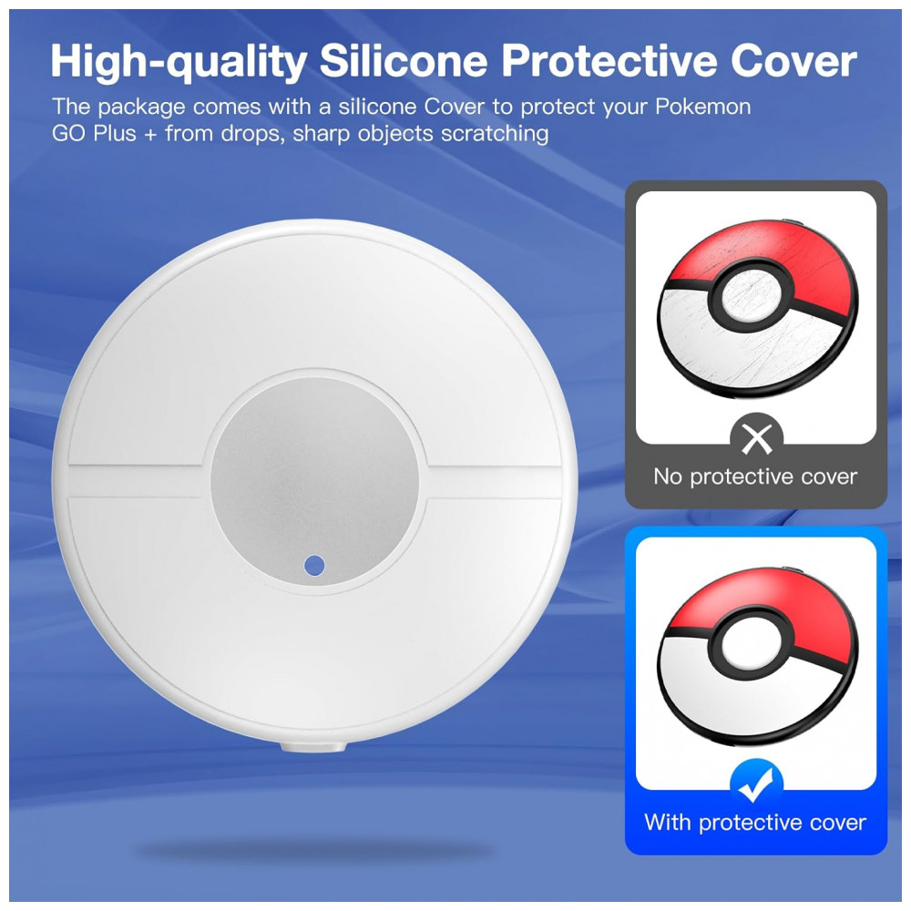A iluminação RGB integrada indica o status de carregamento, utilizando efeitos de luz durante o processo e cor fixa em modo de espera, ajudando a identificar visualmente quando o acessório está pronto para uso. Acompanha capa de silicone sob medida para o Pokémon GO Plus +, com recortes que preservam botões e sensores, mantendo a compatibilidade com o dock mesmo quando o dispositivo está protegido.