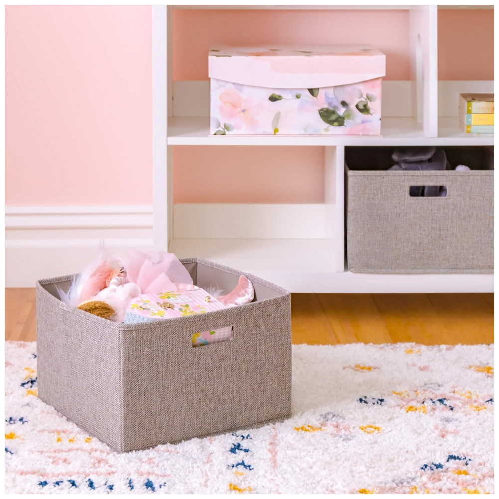 Estante casa de bonecas infantil Martha Stewart Living & Learning branca em madeira com 10 nichos e cestos de tecido para quarto e brinquedoteca