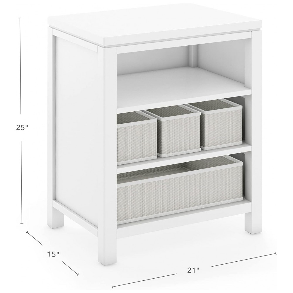 Estante de Madeira para Organização Infantil Martha Stewart Branco Linho com 3 Prateleiras e 4 Cestos Reforçados G77103