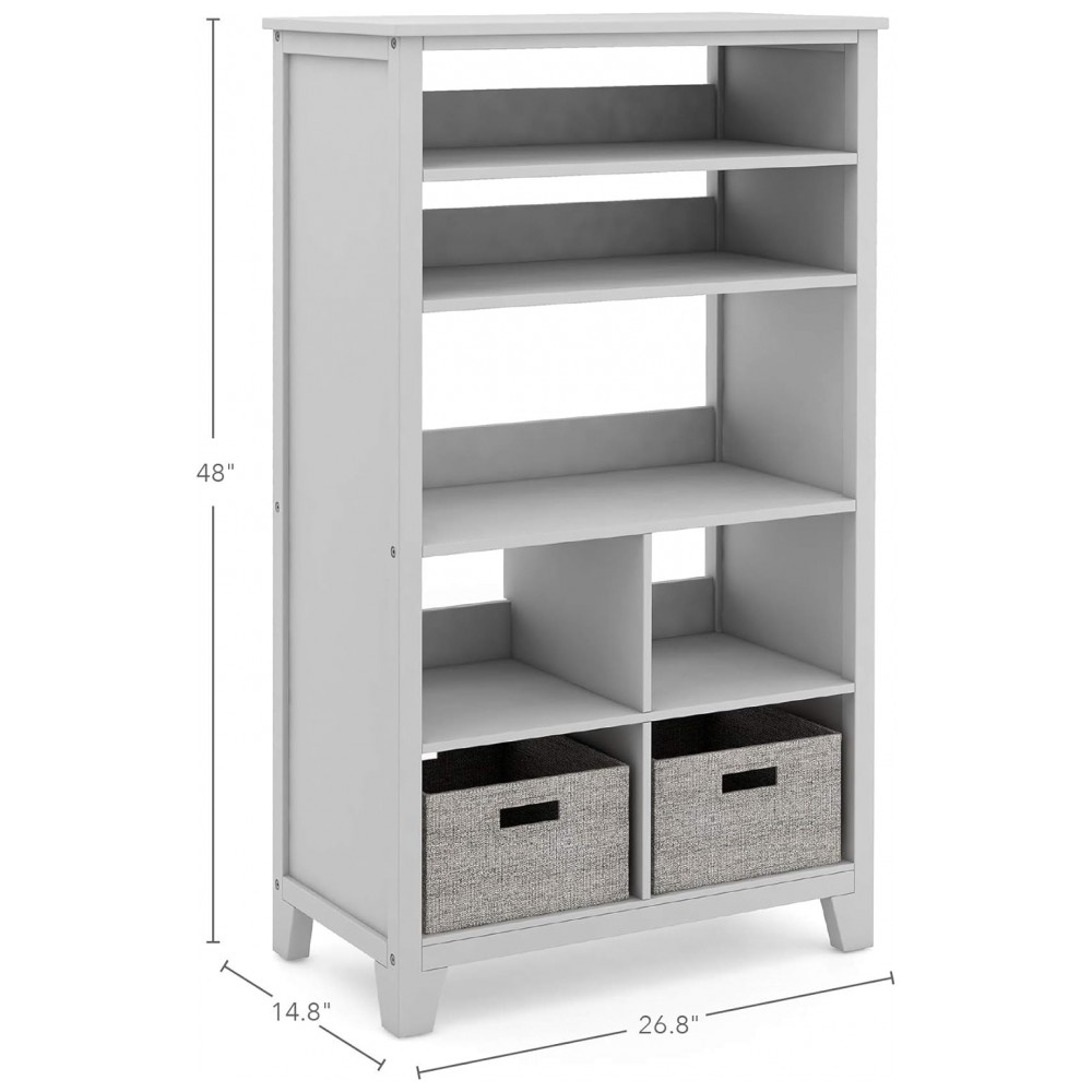 A estante infantil alta Martha Stewart Living & Learning em cinza foi projetada para organizar livros, brinquedos e materiais de estudo em quartos infantis, brinquedotecas e áreas de estudo. O móvel oferece 5 níveis de prateleiras distribuídos em 7 nichos frontais de tamanhos variados, incluindo compartimentos que acomodam cestos de tecido para itens menores.