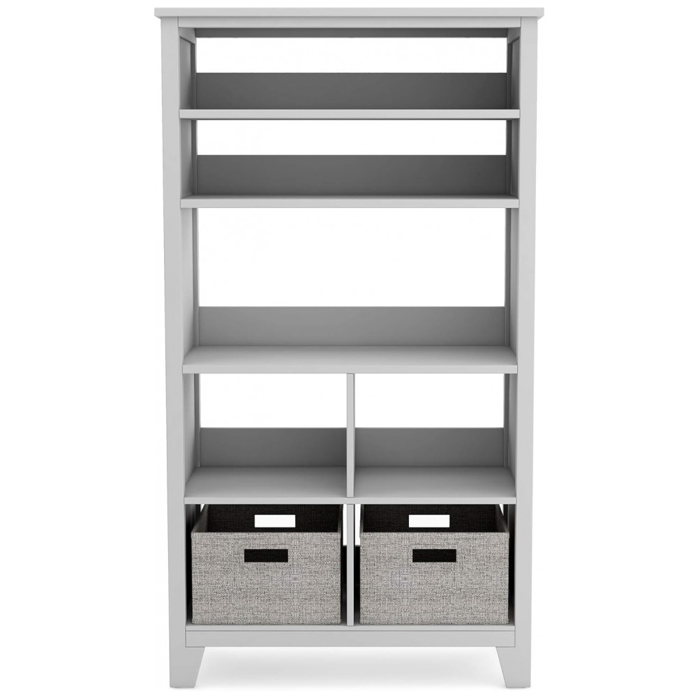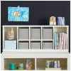 Estante infantil alta Martha Stewart Living & Learning cinza com nichos e cestos de tecido para quarto e brinquedoteca