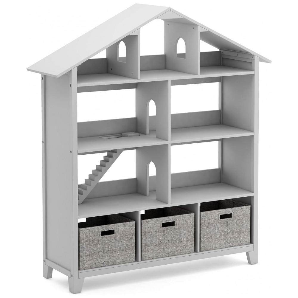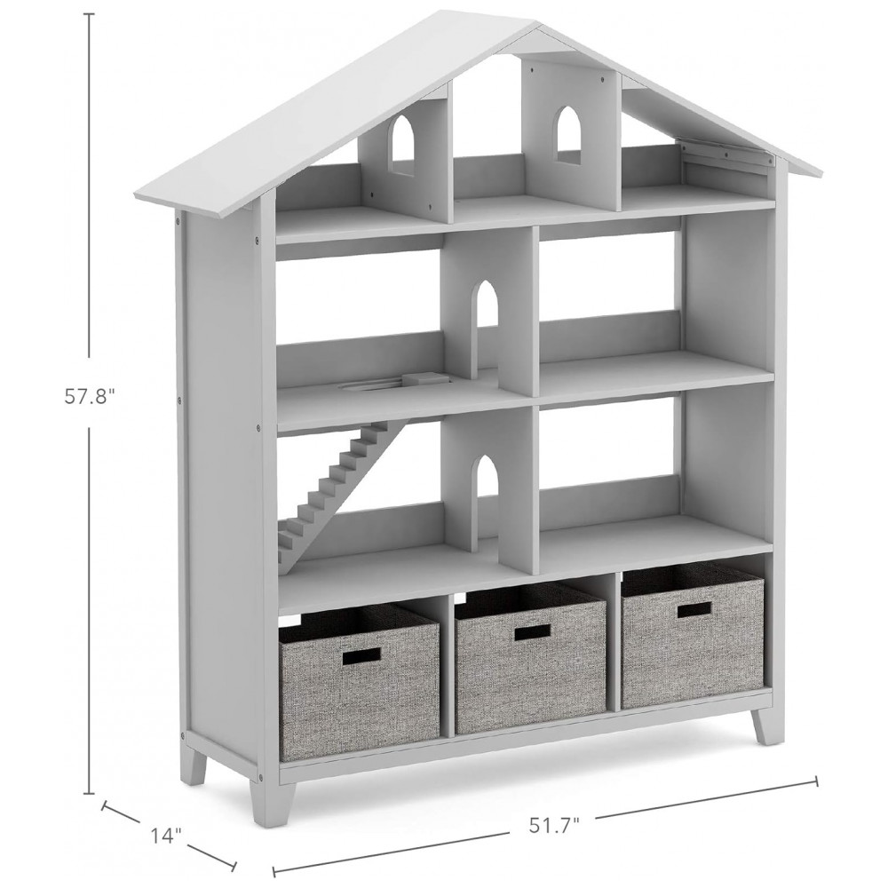 Nome do produto: Kids’ Deluxe Dollhouse Bookcase – Gray