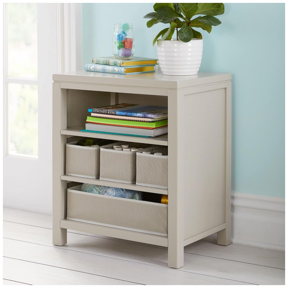 Estante Infantil de Madeira Martha Stewart Cinza com 3 Prateleiras e 4 Cestos Reforçados Organizador G77203