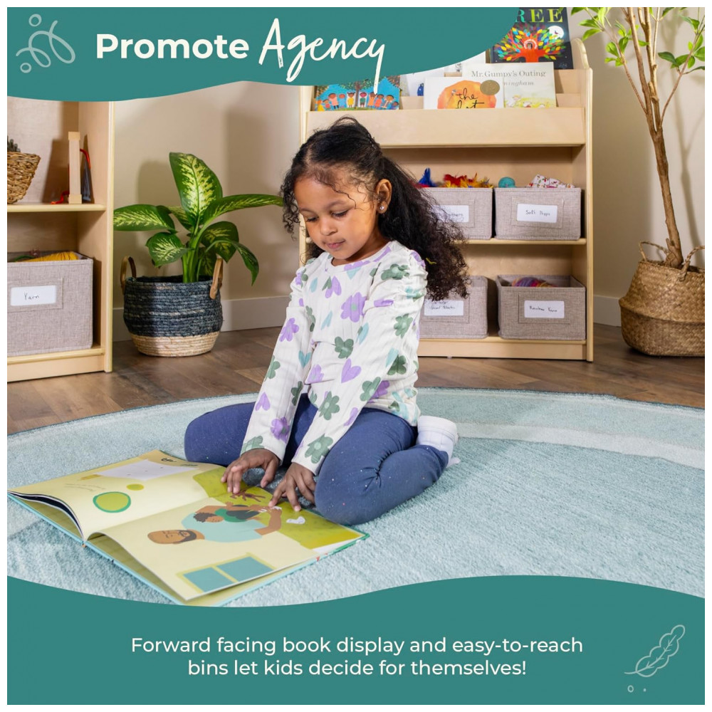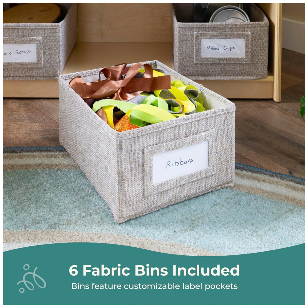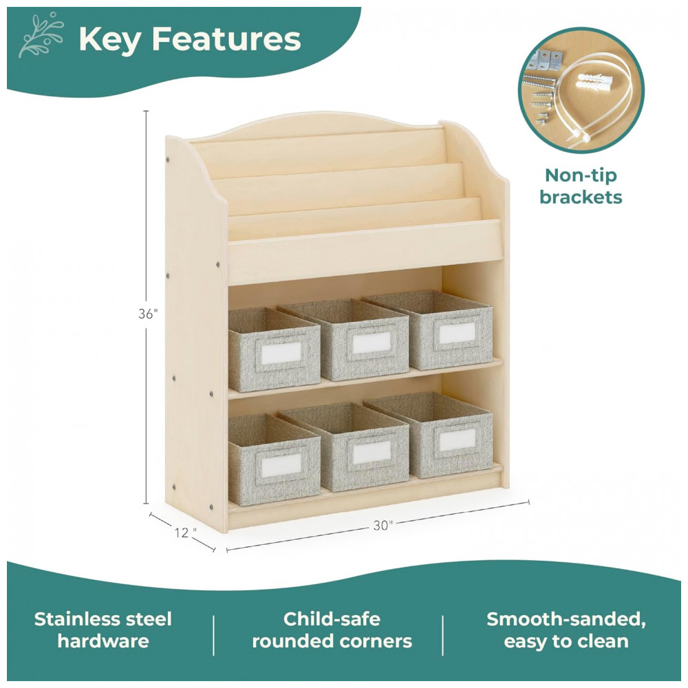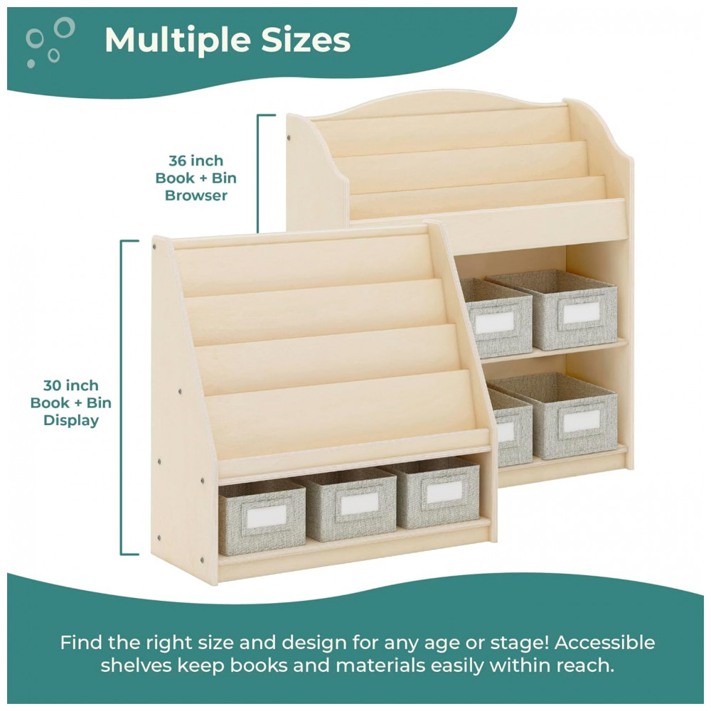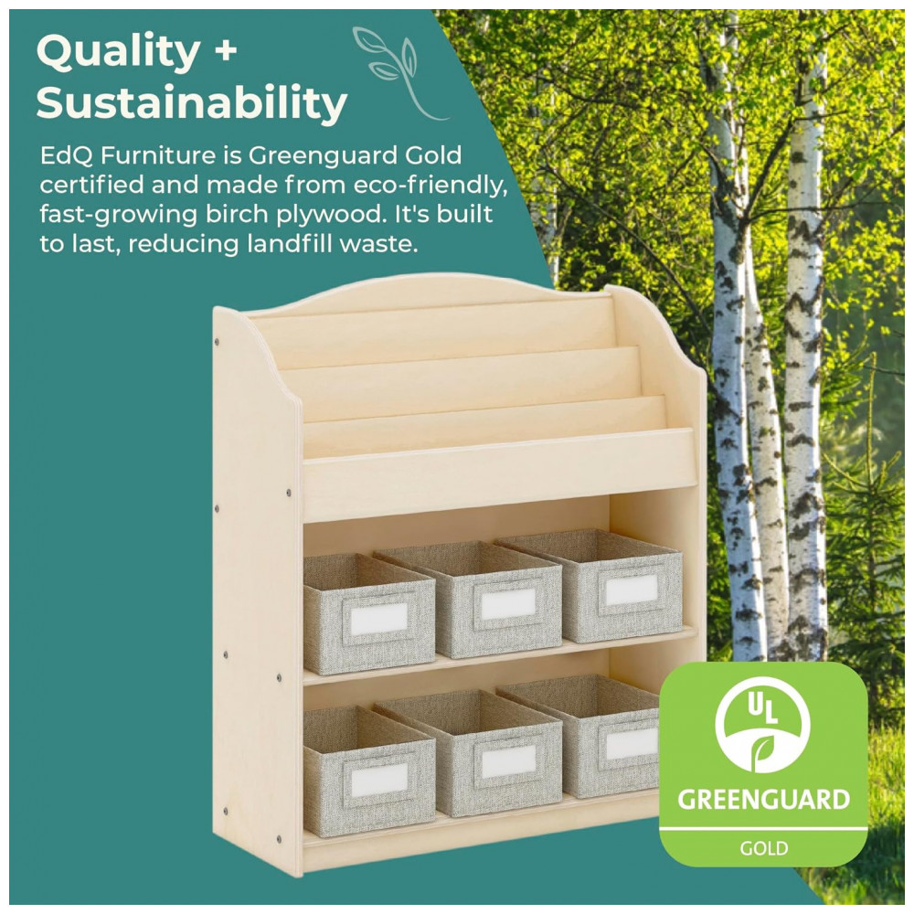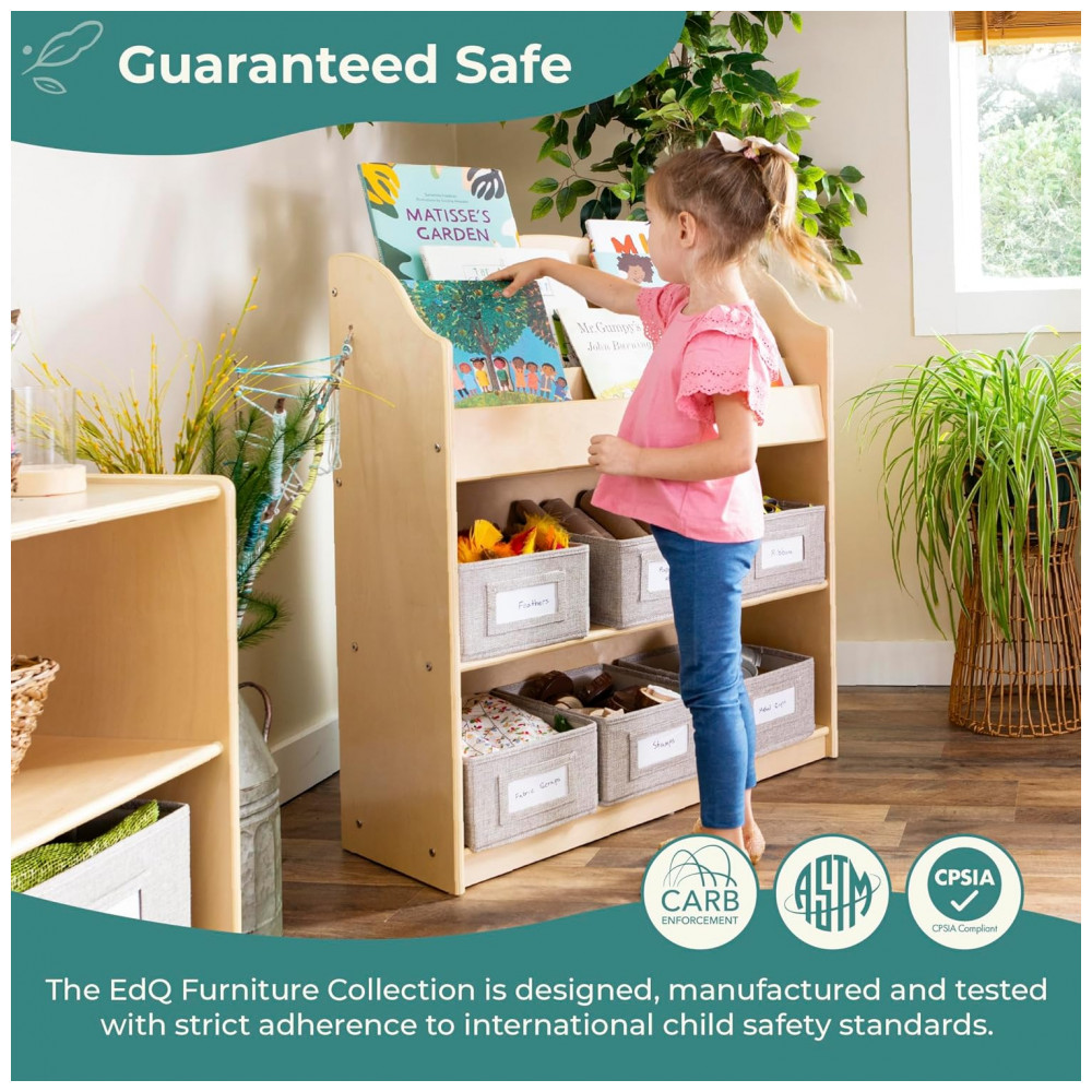 Estante infantil Guidecraft EdQ Book and Bin Browser Natural com exibição de livros e 6 caixas de tecido 91cm
