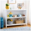A estante mede aproximadamente 76,2cm de altura, 30,5cm de largura e 91,4cm de comprimento, dimensões acessíveis para crianças a partir de 3 anos alcançarem tanto as prateleiras superiores quanto os nichos inferiores. O produto pesa cerca de 18,8kg e suporta até 22,7kg distribuídos, suficiente para um conjunto variado de livros infantis, jogos leve e materiais de uso diário.