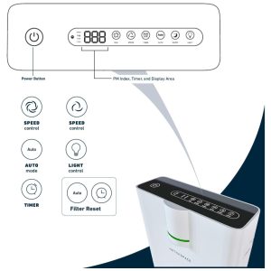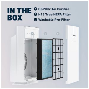 Maior e melhor que o purificador de ar HEPA True True , o HSP002 possui um sistema de filtragem HEPA de 5 estágios, um sensor a laser de qualidade do ar, monitor de índice de qualidade do ar e um sistema silencioso de ventilador, oferecendo mais proteção e controle sobre alérgenos e poluentes do ar.